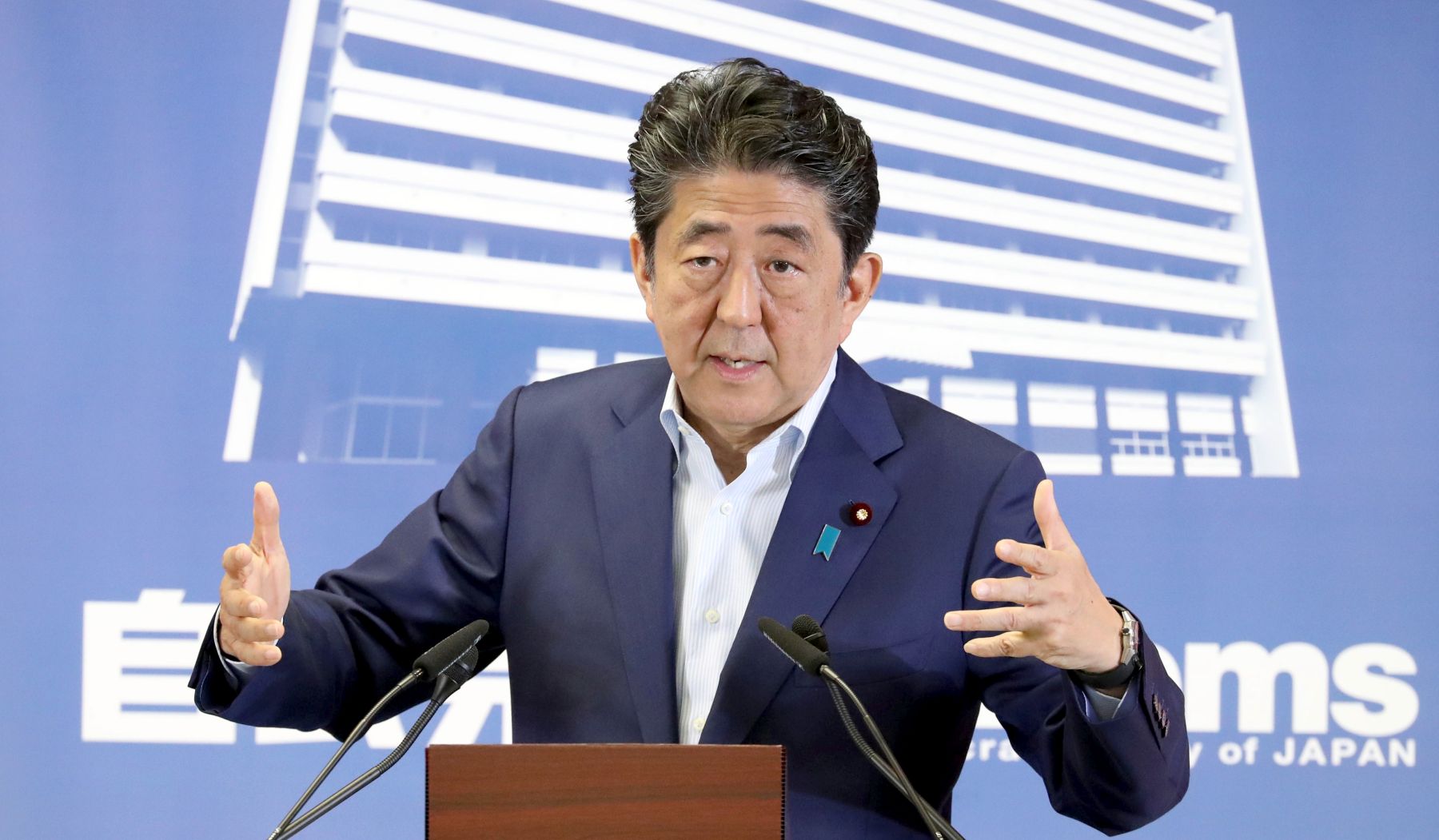 Japan PM Shinzo Abe after the Victory at the Upper House Election in July 2019.