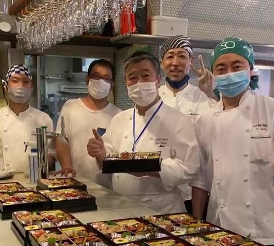 店のスタッフ総出で手伝ってくれた。患者を受け入れる医療機関が大変だということは聞いていましたから何かをしたかったんです。弁当を作っているとき、上空で大きな音がしたので外に出ると、航空自衛隊の「ブルーインパルス」6機が医療従事者に謝意を示すためにアクロバット飛行を行っていました。感動しましたね。「甘いものがほしい」という医療機関のため、大きなプリンを200個焼いて自分の車で運んだこともありました。