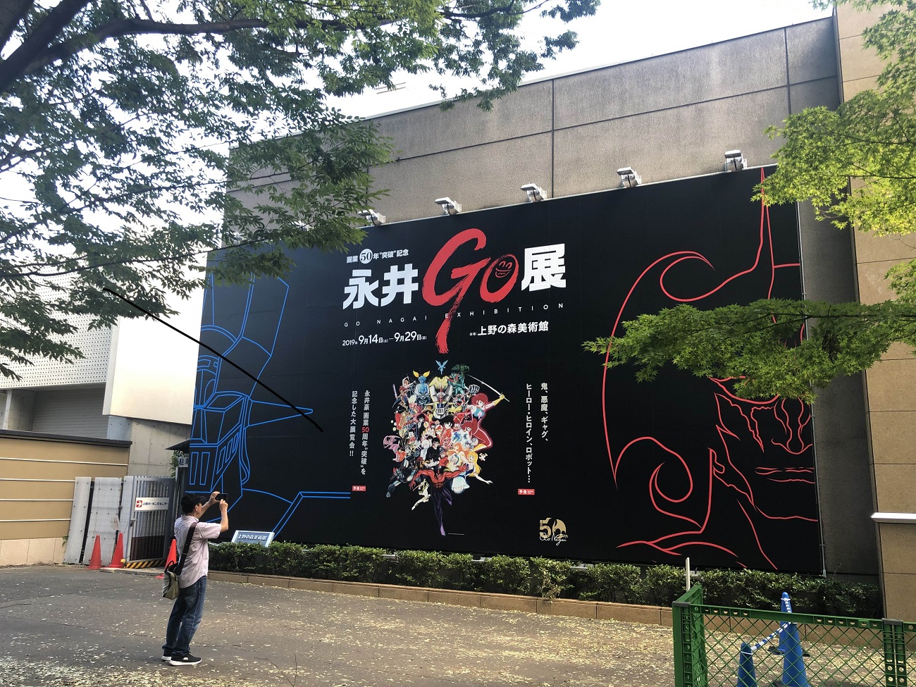 同美術館の外壁には、「マジンガーZ」、「デビルマン」などおなじみのキャラクターが描かれた縦約6メートル、横約12メートルの巨大看板が登場。記念撮影するファンの姿も見られた。同展は29日まで。