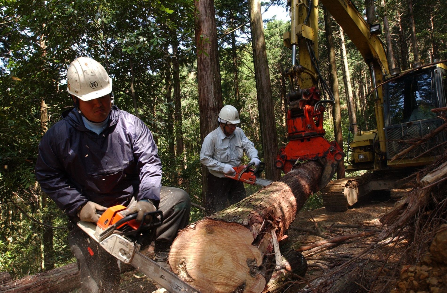 Preparing a selected log for Shikinen Sengu renewal and rebuilding rituals at Ise Jingu