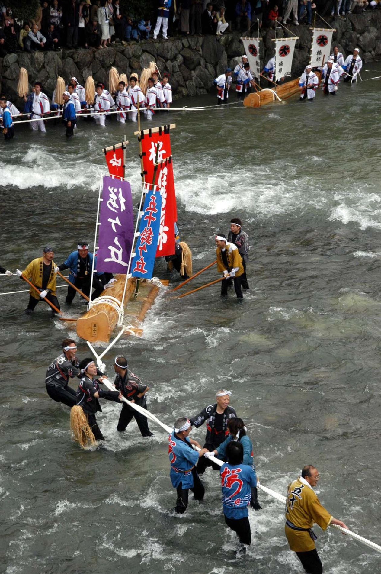 式年遷宮は、新しい社殿に用いる最初の木をきり出す祭りを皮切りに、その8年後の御鏡の渡御に至るまで、32の諸祭・行事が行われます。