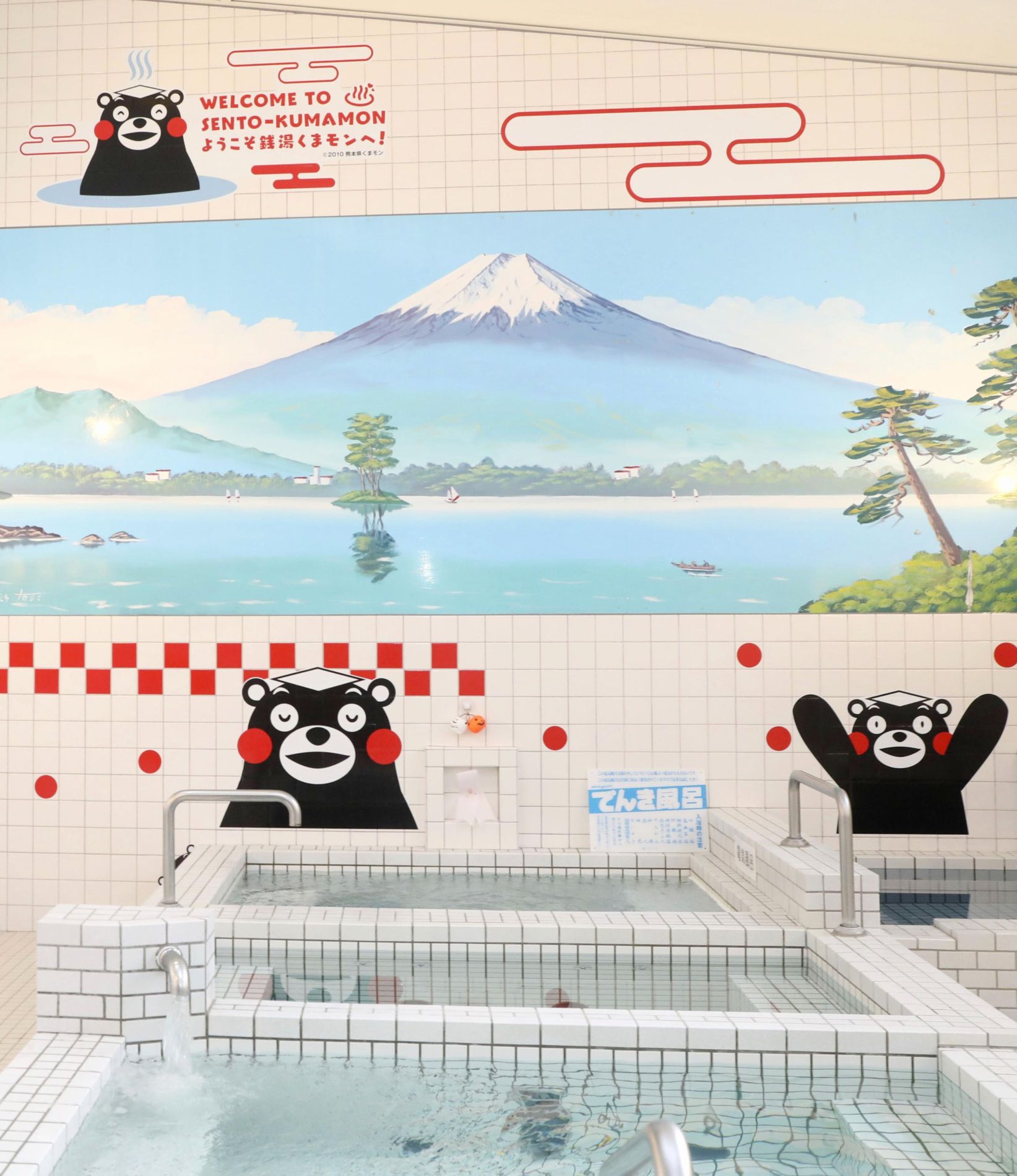 経営する坂崎友治さん(56)は「外国の人にも銭湯とくまモンを楽しんでほしい」と期待する。料金は400円。火、水曜定休。