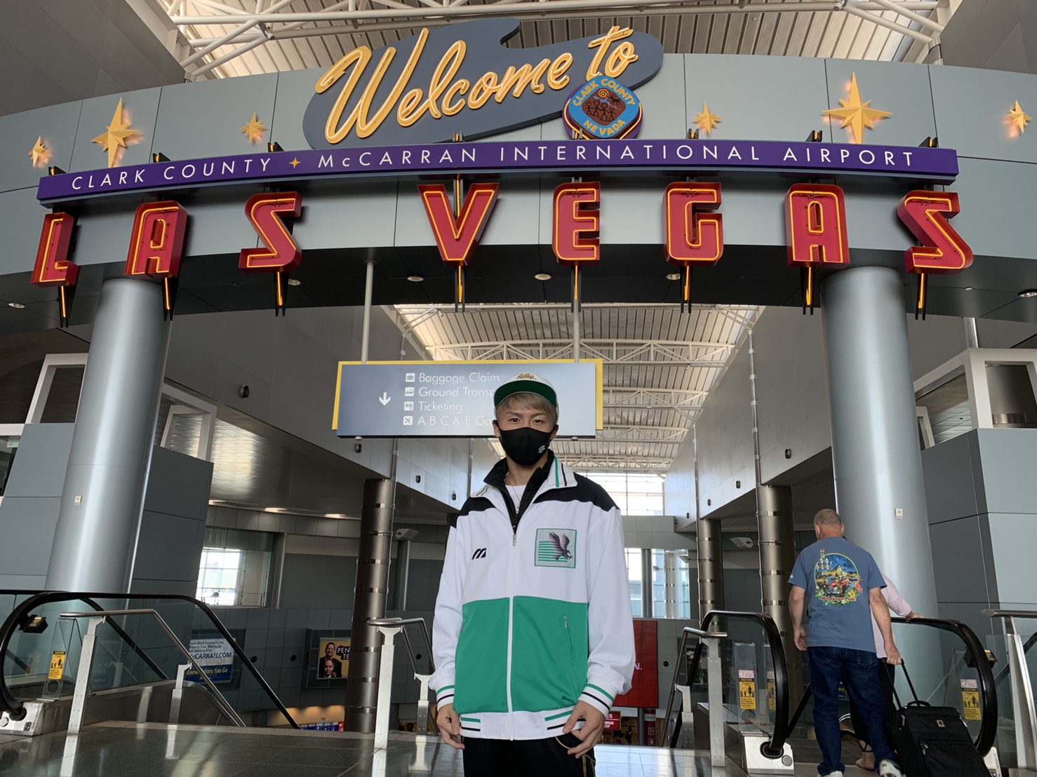 10月18日、羽田空港出発ロビーに姿を見せた金髪の井上は、「1年ぶりの試合になるので、ファンの皆さんの気持ちをドネア戦のように再び熱くさせるような試合をします。テレビを見ている人たちが熱狂するような試合を見せます」と語り、ラスベガスへ飛び立った。