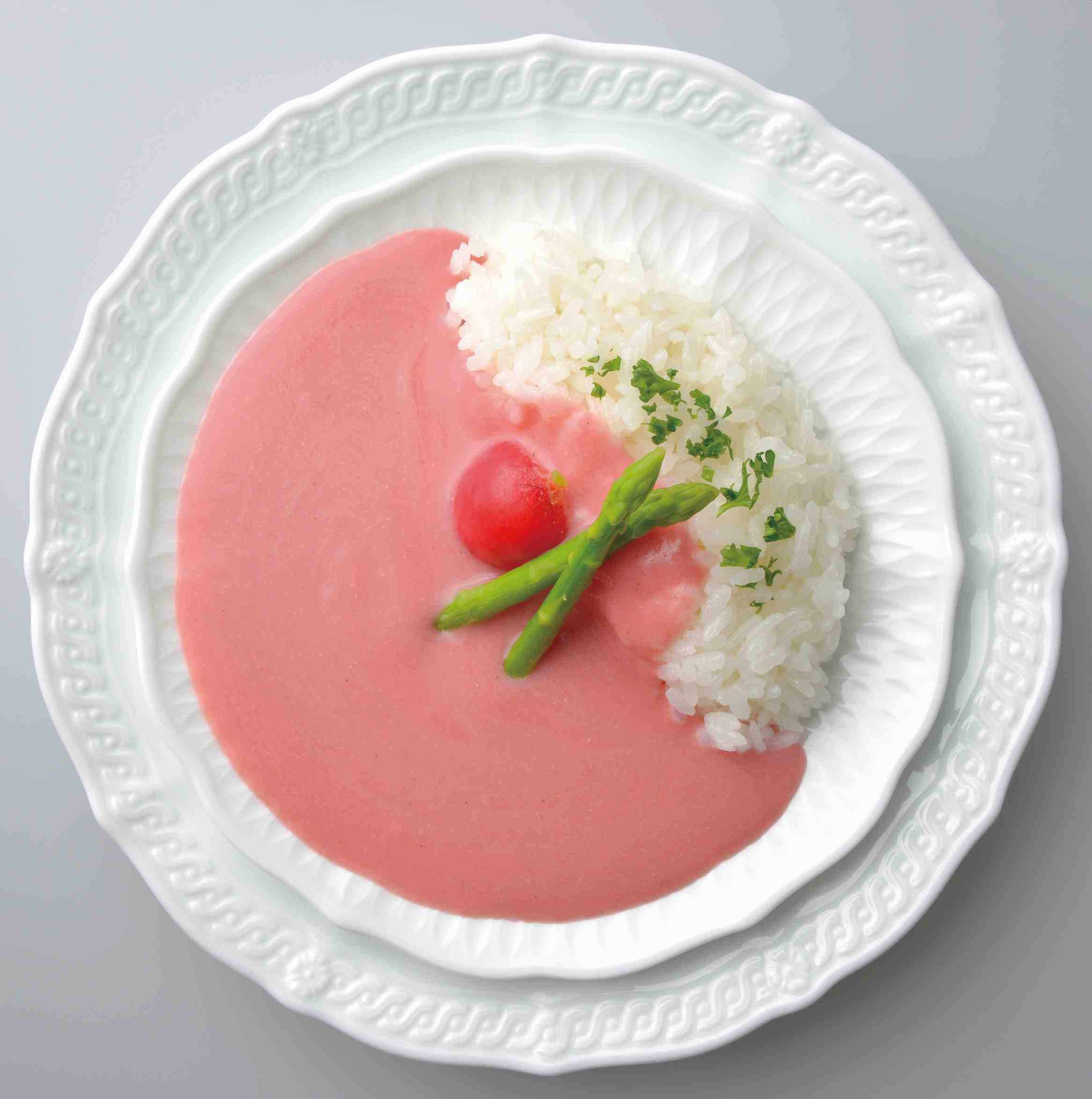 ピンクのカレーを販売するのは、従業員約20人の食品会社「ブリリアントアソシエイツ」(鳥取市)。看板商品の「ピンク華麗」は、奇抜な色合いだが、口に入れるとスパイスが効いた本格的なカレーだ。