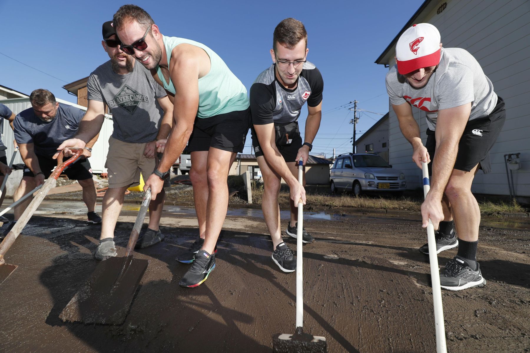The town of Kamaishi in Iwate Prefecture was supposed to host the Rugby match between Canada and Namibia early on Sunday, October 13. Instead, it was hit hard by the typhoon. Rather than let themselves become downtrodden over the cancellation, the concerned teams helped out the locals by clearing up the mud left by the storm, bringing much needed cheer to the disaster-afflicted Kamaishi community.