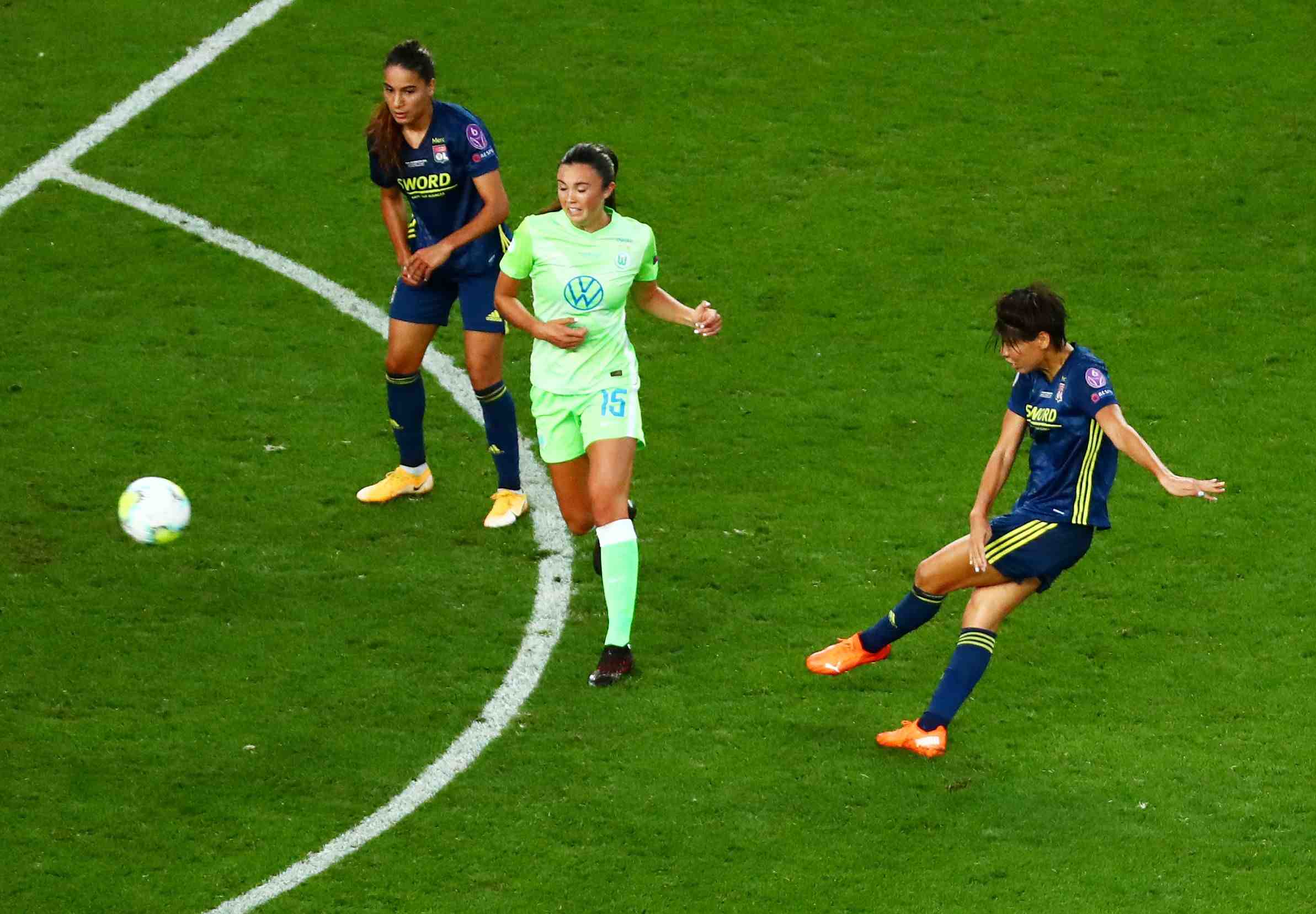 With two minutes remaining in the opening half, the veteran midfielder delivered a left-foot strike from the edge of the area to put Lyon in front 2-0, and Kumagai became the first Asian player to score a goal in the Women's Champions League final.