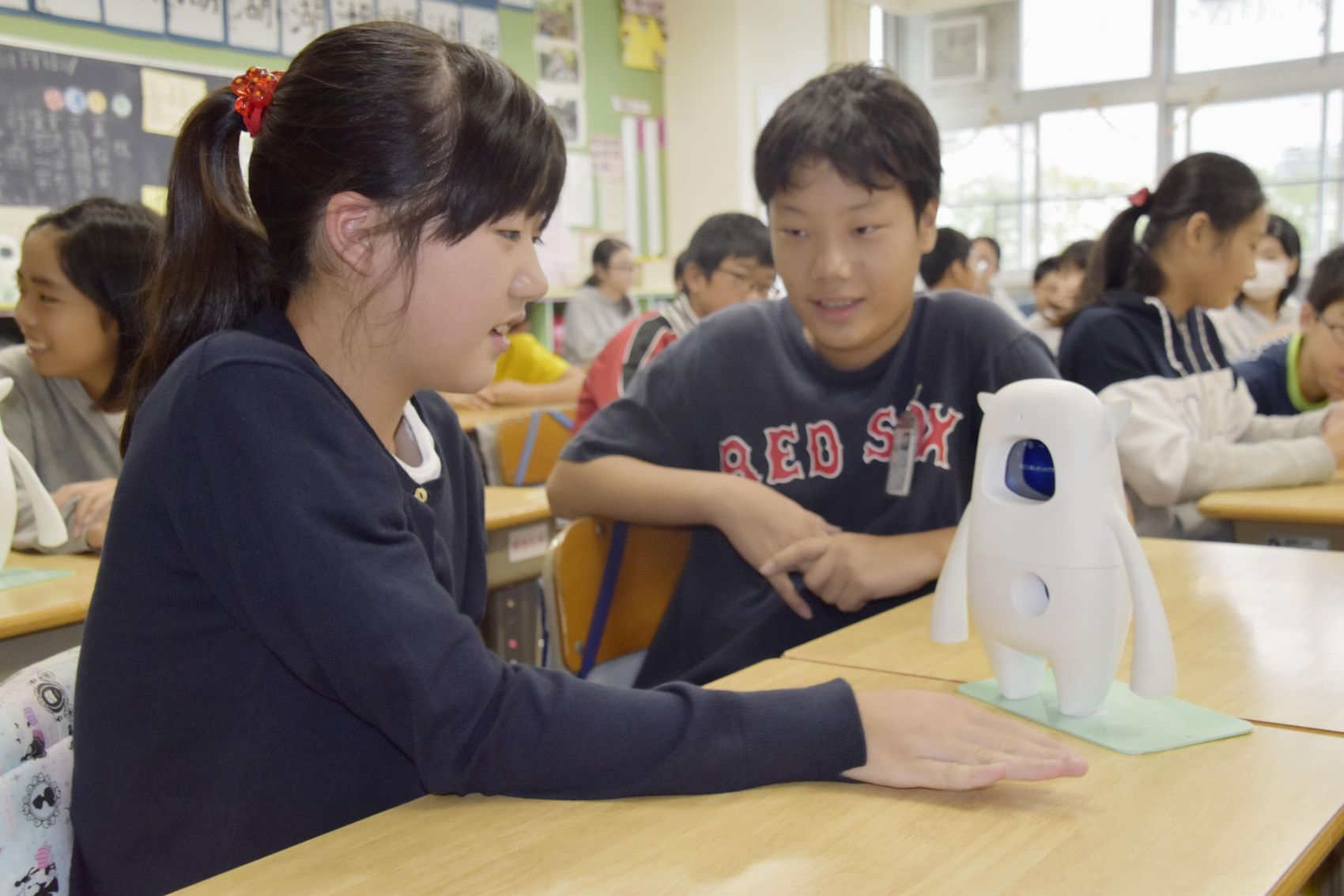 The elementary school was the first in the country to start using the English language teaching AI robot “Musio X.” It has been using the 20-centimeter-tall robot for about the last two years to facilitate its English program.