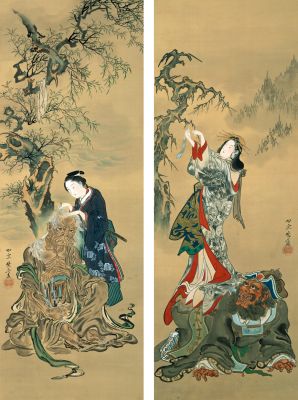 His paintings clearly reflect the impact of the tumultuous times in which Kyosai lived, as Japan quickly transitioned itself from a feudal society to a modern nation-state.