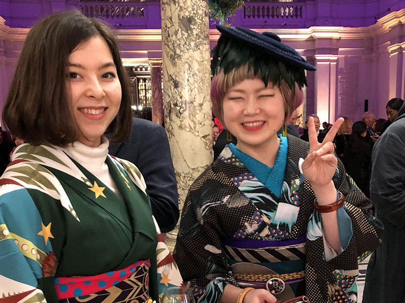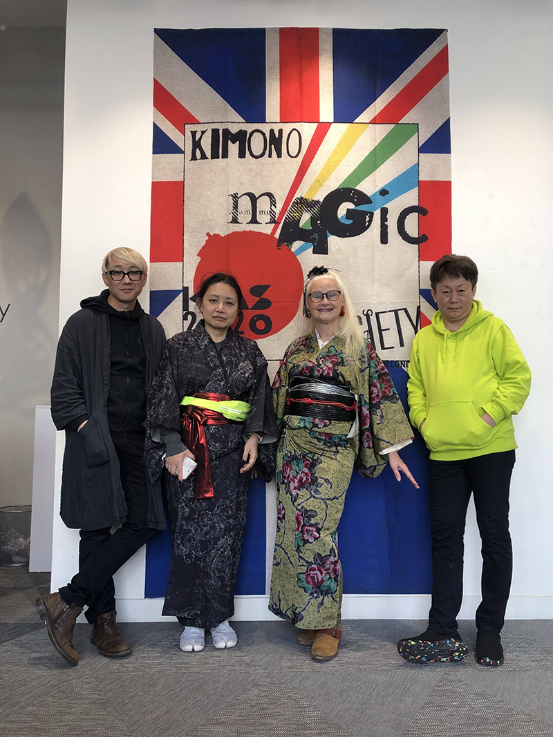 The first event that happened was the “Kimono Bash in RCA, London,” which was organized in conjunction with the Royal College of Art. Preparations had been hampered by time zones, missed Skype meetings, and a teachers’ strike that kept Dr. Sarah Cheang off the university campus. But somehow we pulled off an exciting interactive event.