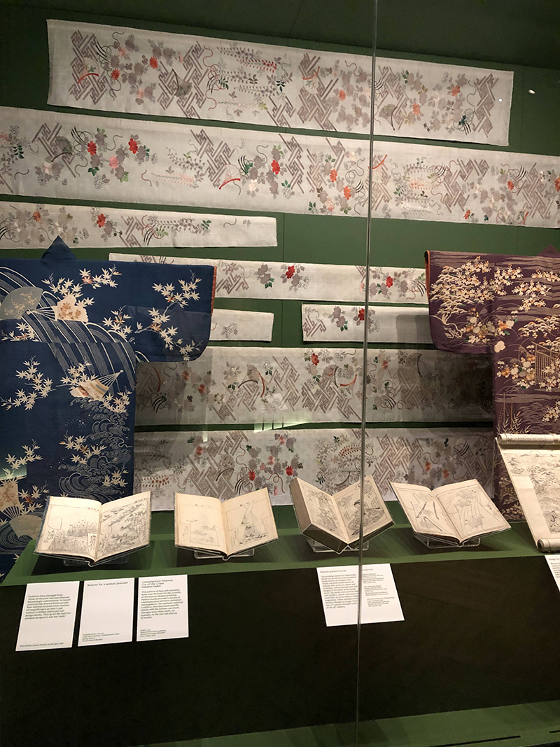 In the first section of the exhibition, which was the Edo period, the way that people in different classes dressed was shown. It also showed how kimono designs were spread through the populace using pattern books and ukiyo-e prints.