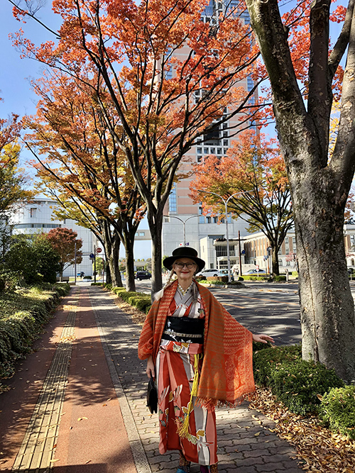 I went to visit Maebashi the other day, to learn a little about the place, enjoy the autumn leaves and sunshine and to meet a very special person. He is someone who I have admired for a while, and who I met at a kimono summit in Saitama last year. It is safe to say that he is one of the most dandy kimono wearers around.
