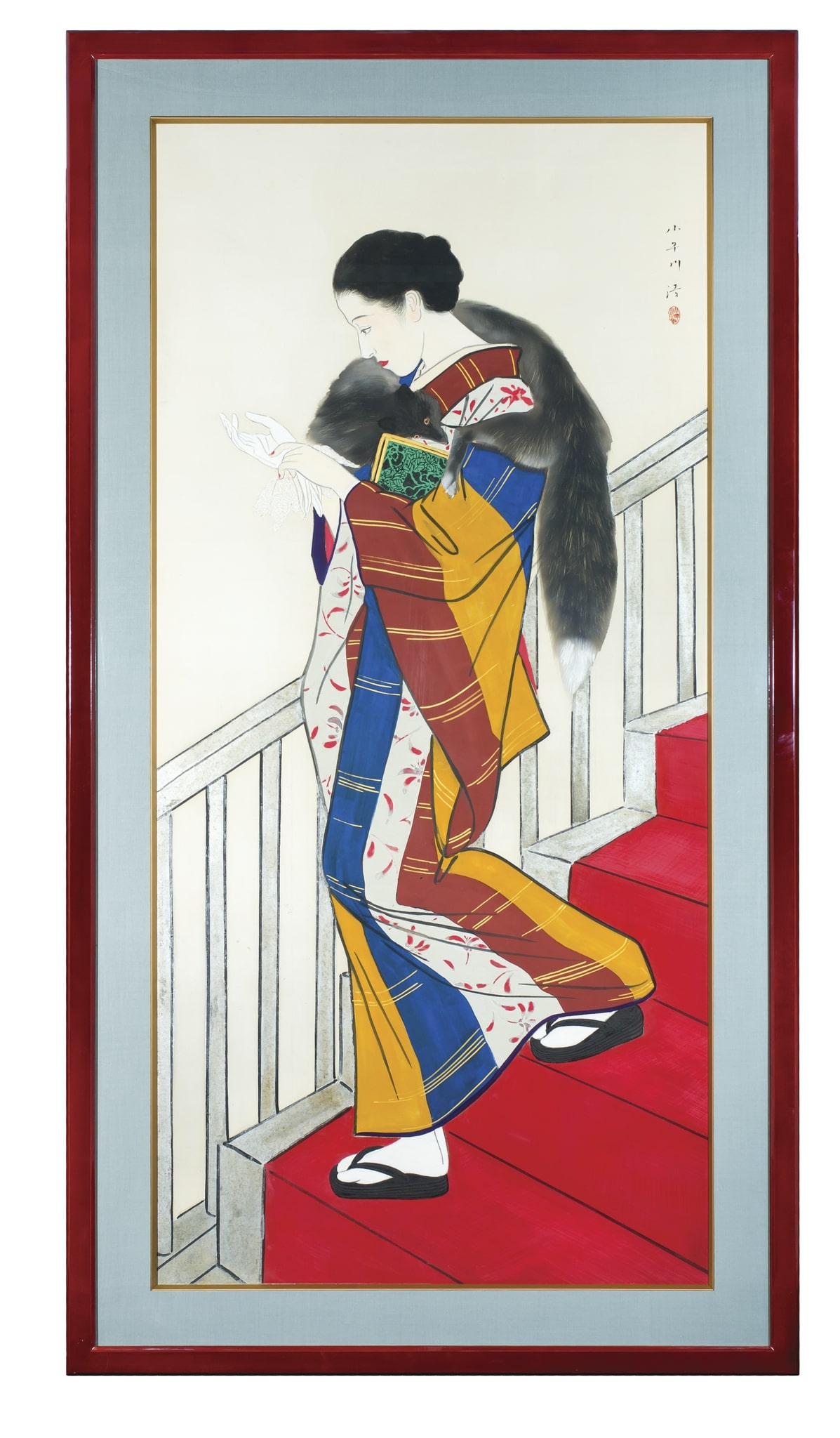 One charming painting in the V&A shows a kimono-clad woman as the epitome of modern sophistication, with a clutch bag under her arm and a fox fur draped over her shoulders. Although painted in 1935, she looks strikingly contemporary. One can easily imagine her sharing a selfie on social media.