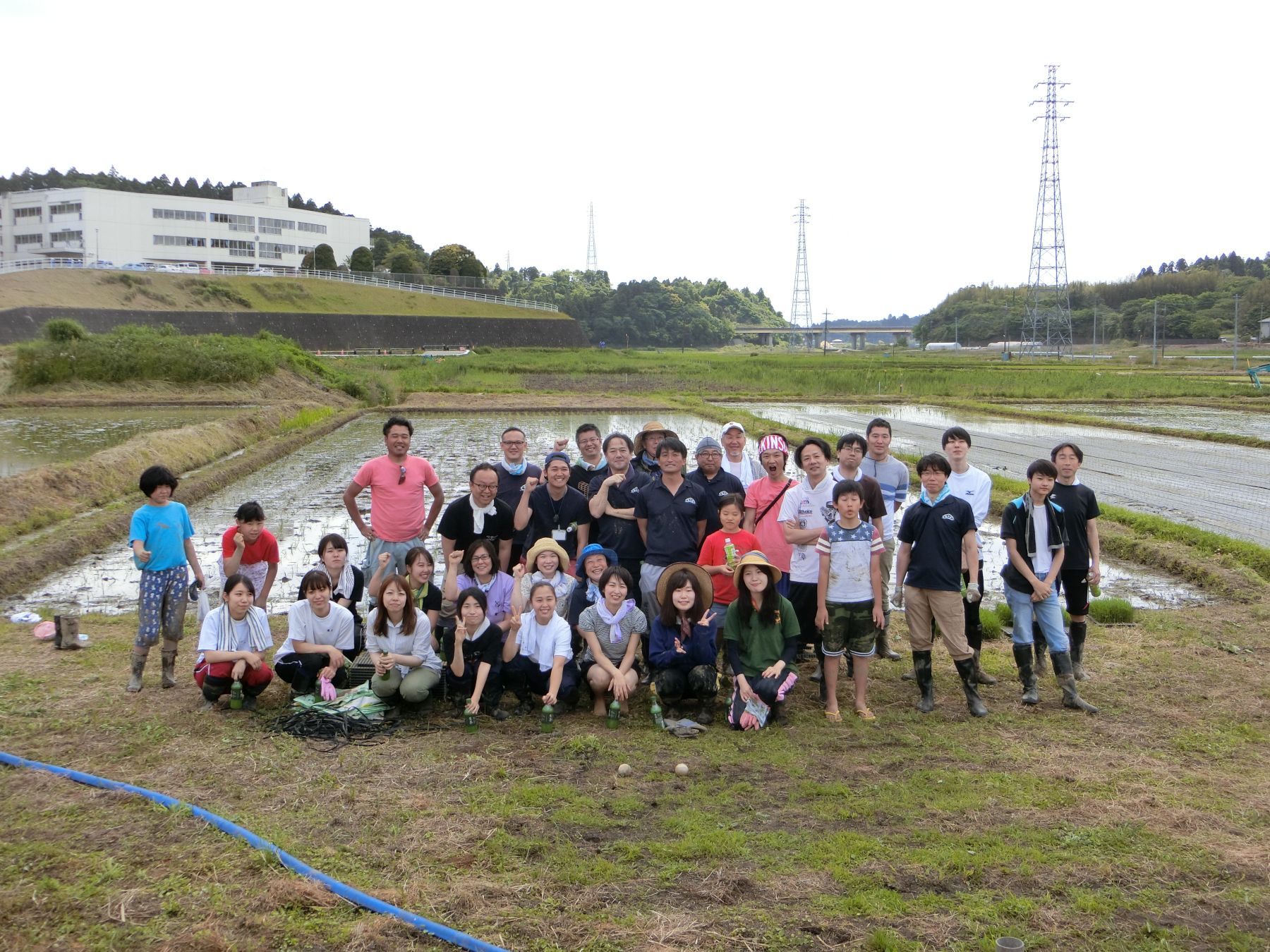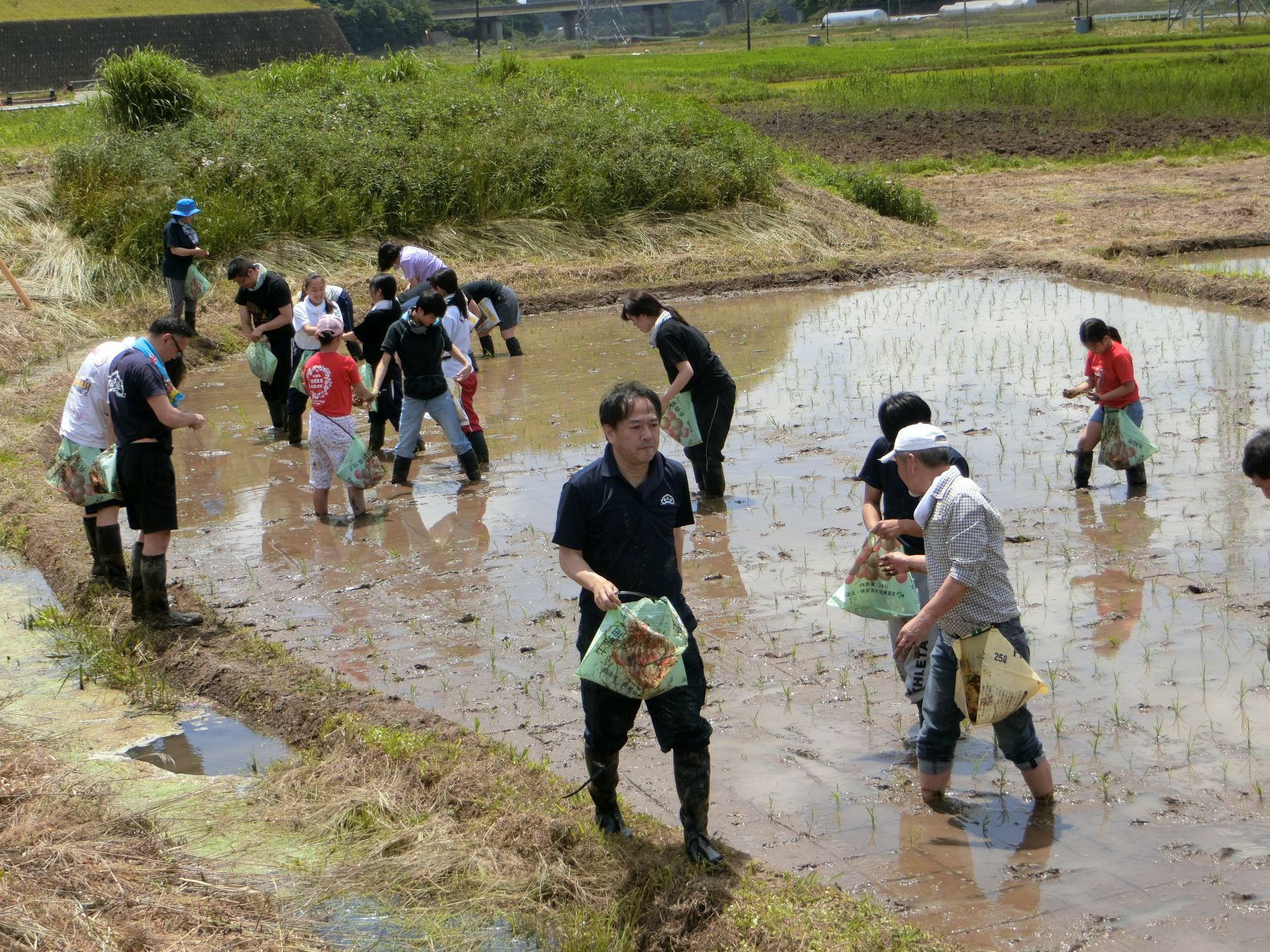 These rice paddies are a quintessentially Japanese scenery reminiscent of former times — young, enthusiastic employees planting rice, employees’ children playing around in the mud.