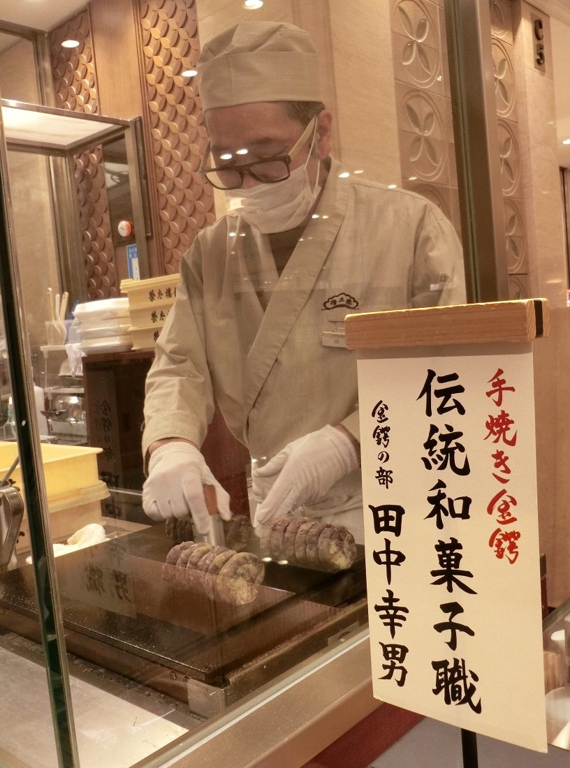 Nestled in a corner of the confectionery section is Eitaro Sohonpo, a veteran Edo-style Japanese store that celebrates its 200th anniversary this year. The shop is a rare site where customers can watch the skilled confectioners at work.