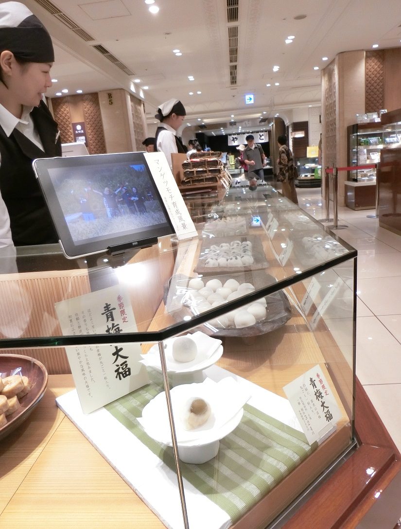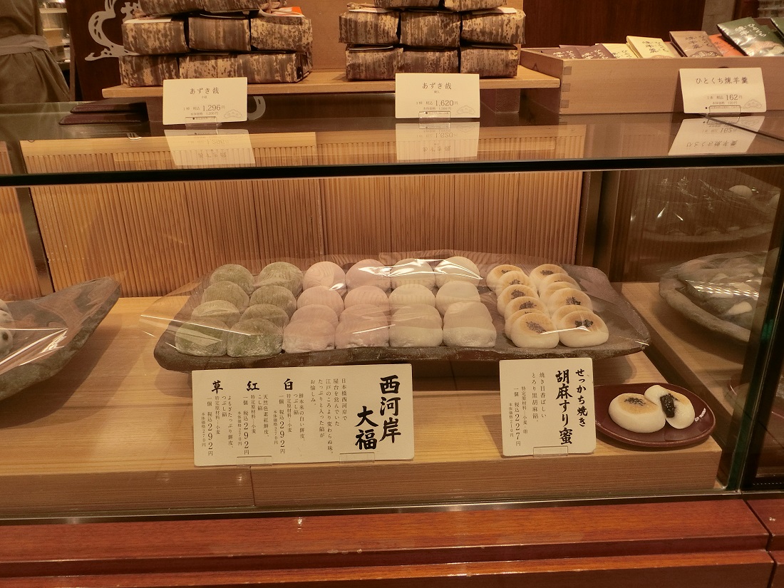 Another way to enjoy the sweets is to visit the Setsugekka Cafe located on the 6th floor of the department store. Here you can indulge in in-store traditional green tea and Japanese sweets like anmitsu (boiled beans with red-bean jam topped with other delicacies), mamekan (another type of sweet dish of boiled beans with agar), or shaved ice treats.
