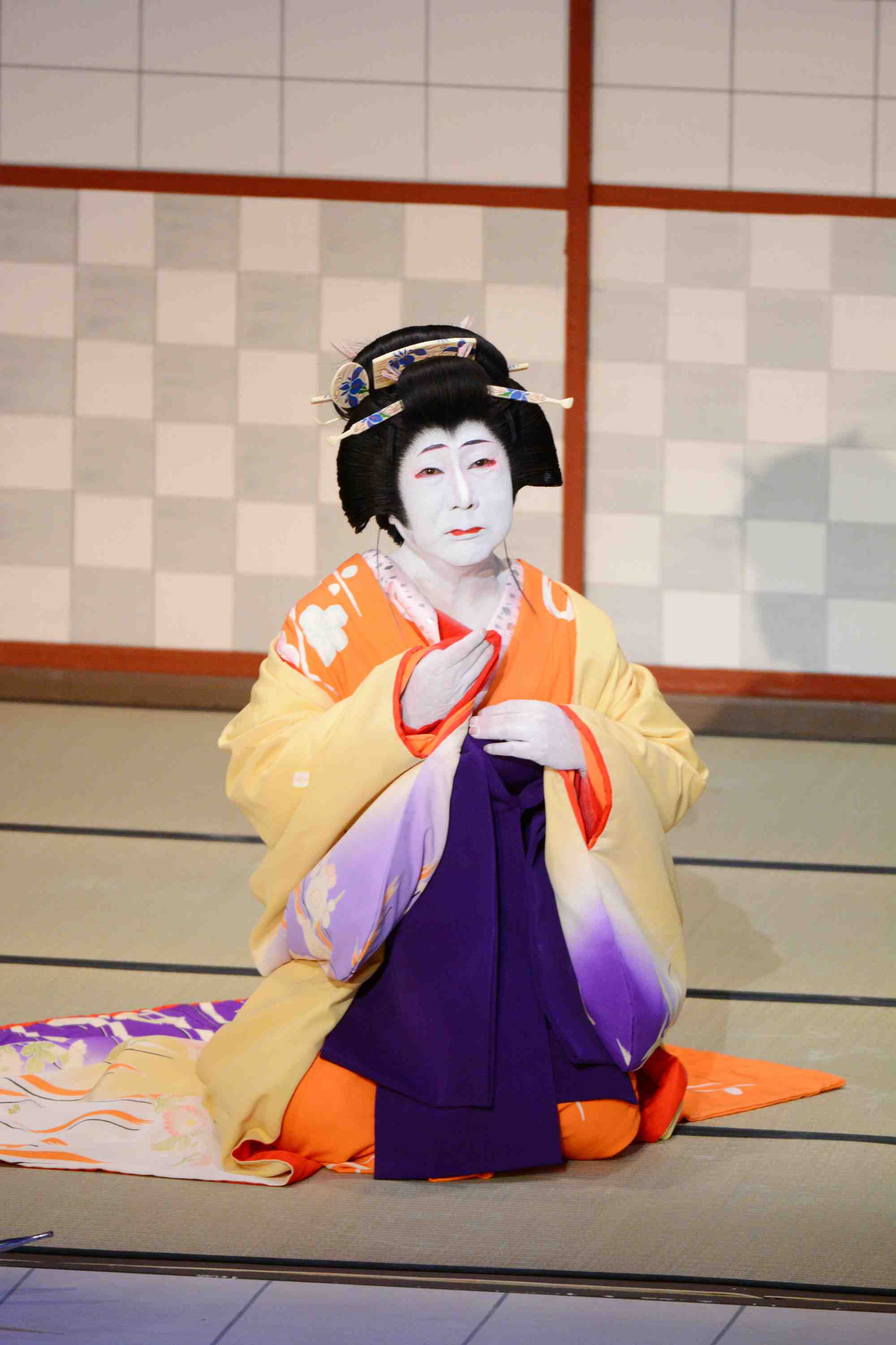 Still, he was equally impressive bringing out the essence in onnagata roles, such as the nursemaid Masaoka in Meiboku Sendai Hagi and Tonase in the classic tale of revenge Kanadehon Chushingura—9th Act.