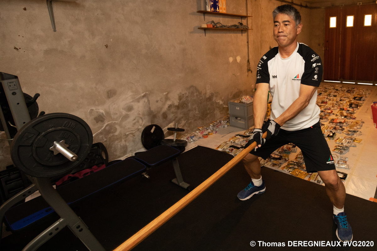 Kojiro Shiraishi works out in preparation for the Vendée Globe on October 1.