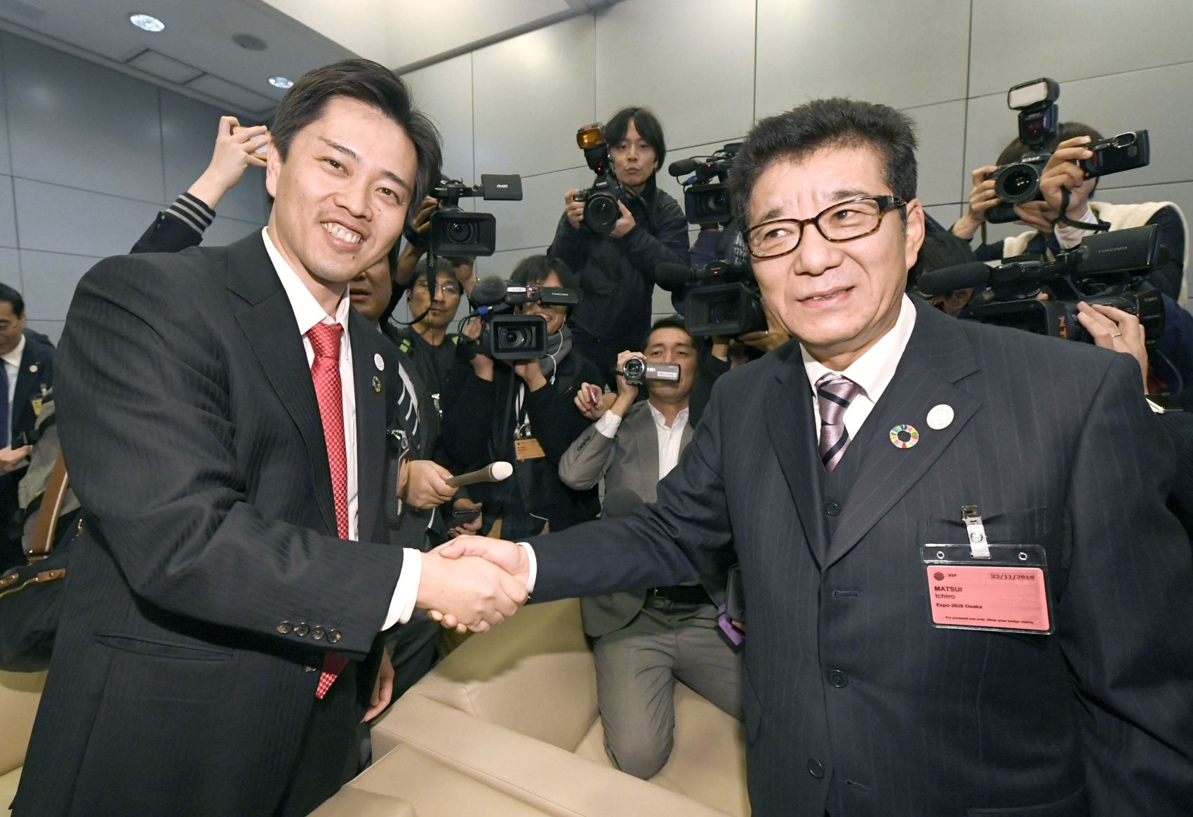 Osaka Prefecture Governor Ichiro Matsui and Osaka Mayor Hirofumi Yoshimura were in Paris as Japan’s proposed theme, "Designing Future Society For Our Lives,” was announced as winner.