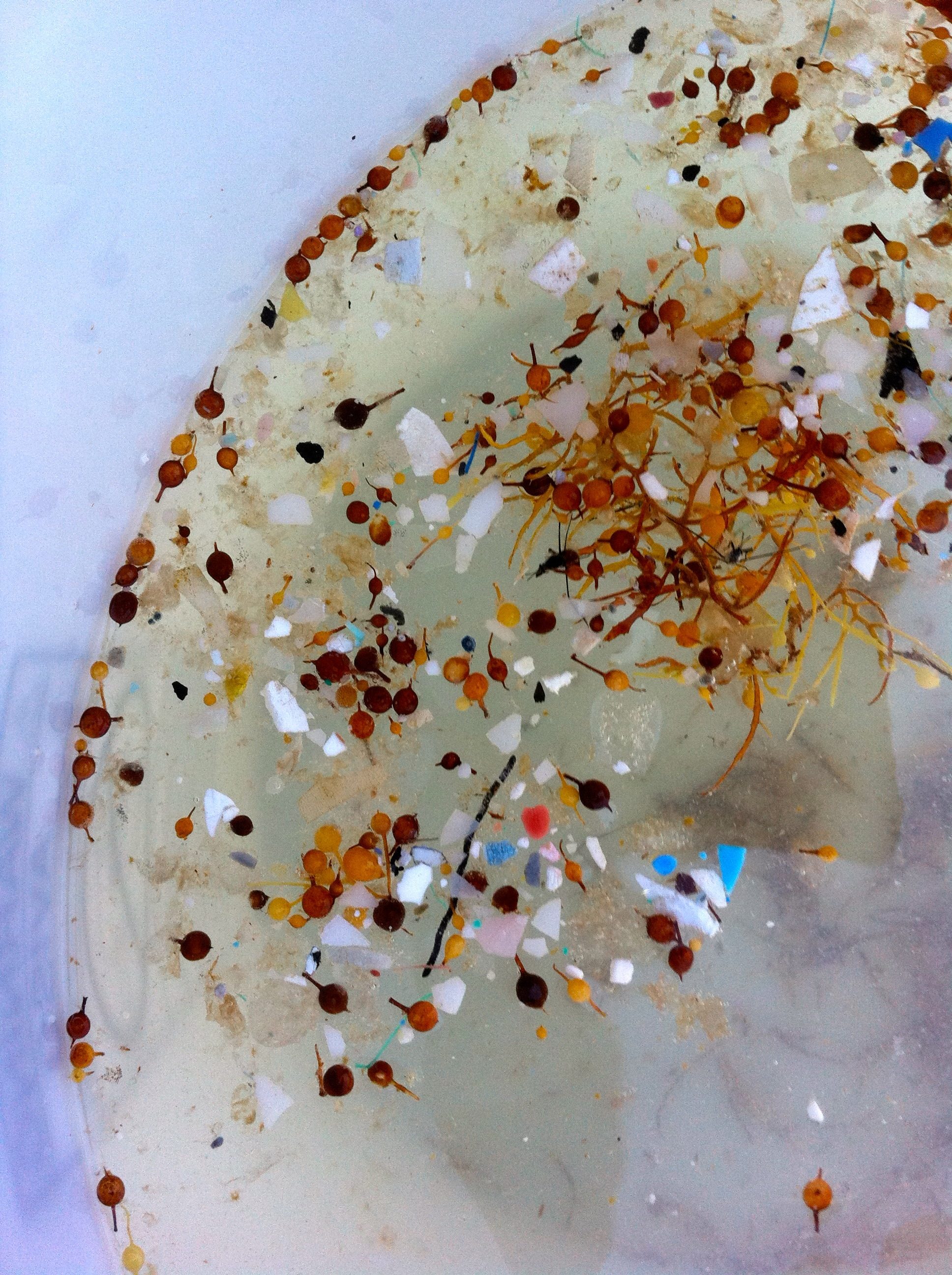 Microplastic particles, sometimes called “nurdles,” act like sponges, soaking up and concentrating toxins in the ocean, which eventually travel up the food chain. Nurdles have already been found in plankton, shellfish, larger fish species, and even sea birds.