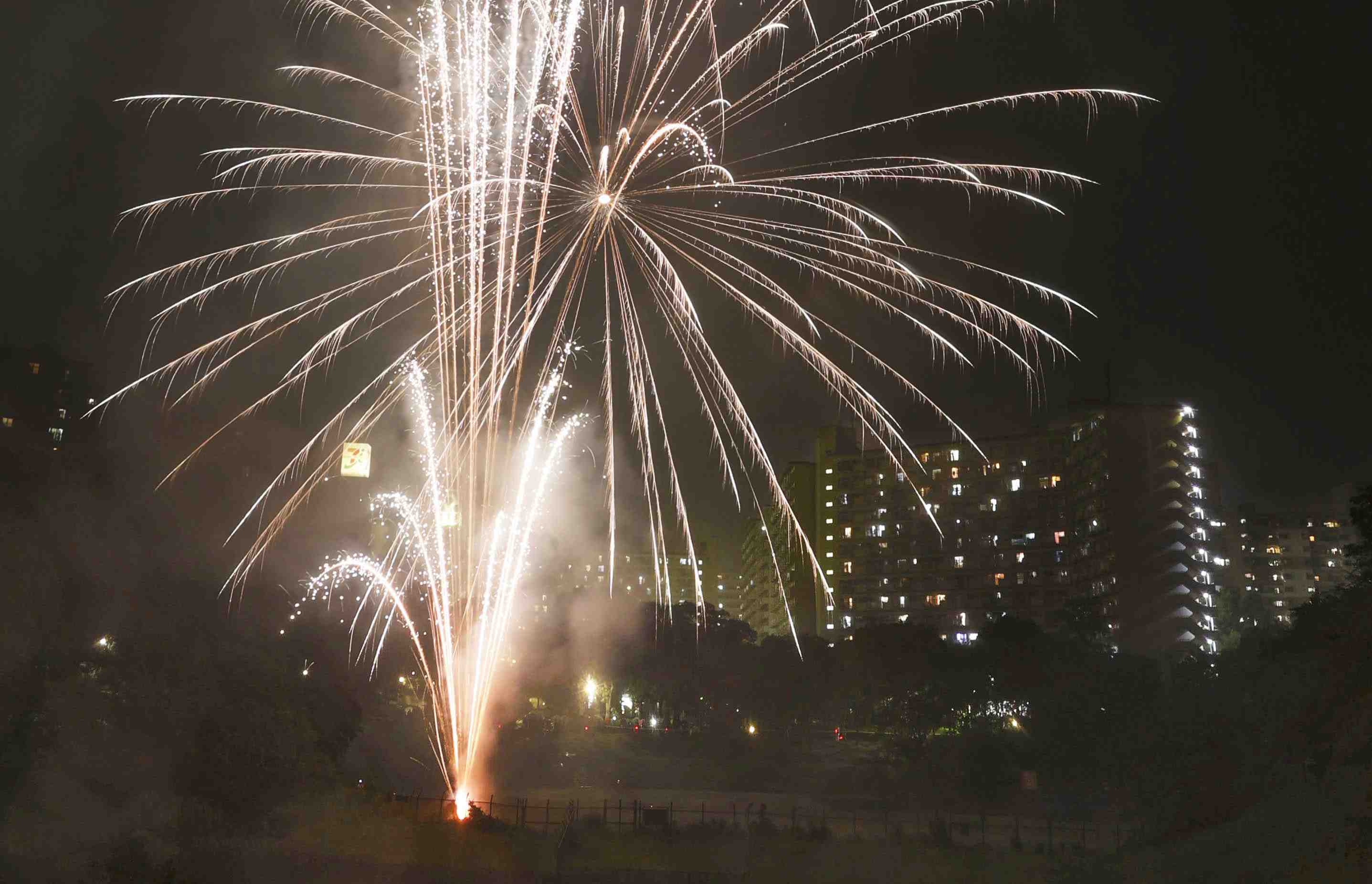 As a precautionary measure, the locations of the fireworks displays were not revealed in advance. People were simply told at short notice to keep an eye out for fireworks in the evening sky.