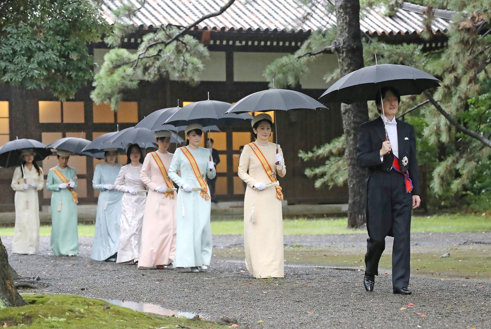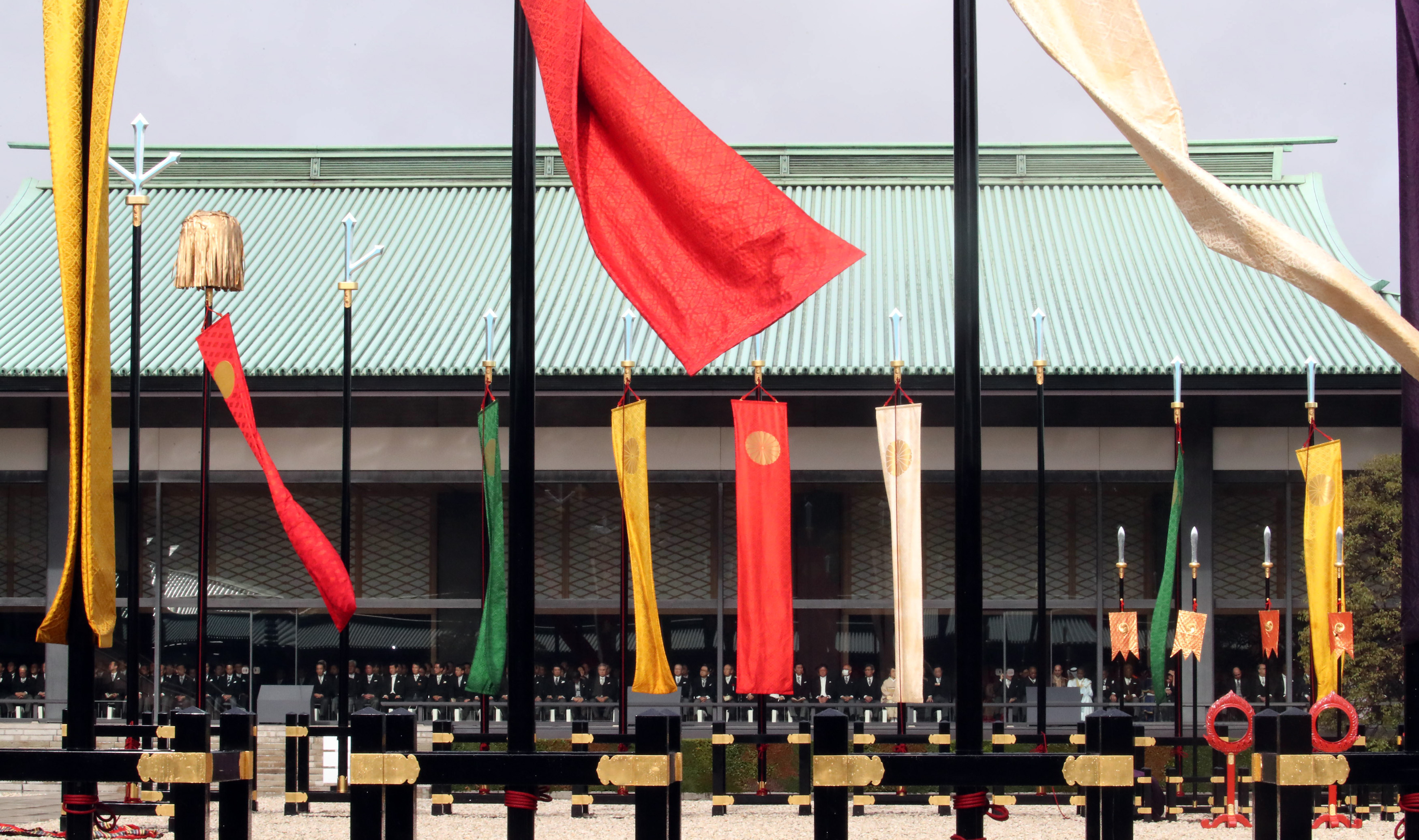 The enthronement ceremony, Sokui-Seiden-no-Gi, began at 1 P.M. on October 22, featuring the Jewel and the Sword, two of the three imperial regalia used in formal occasions.