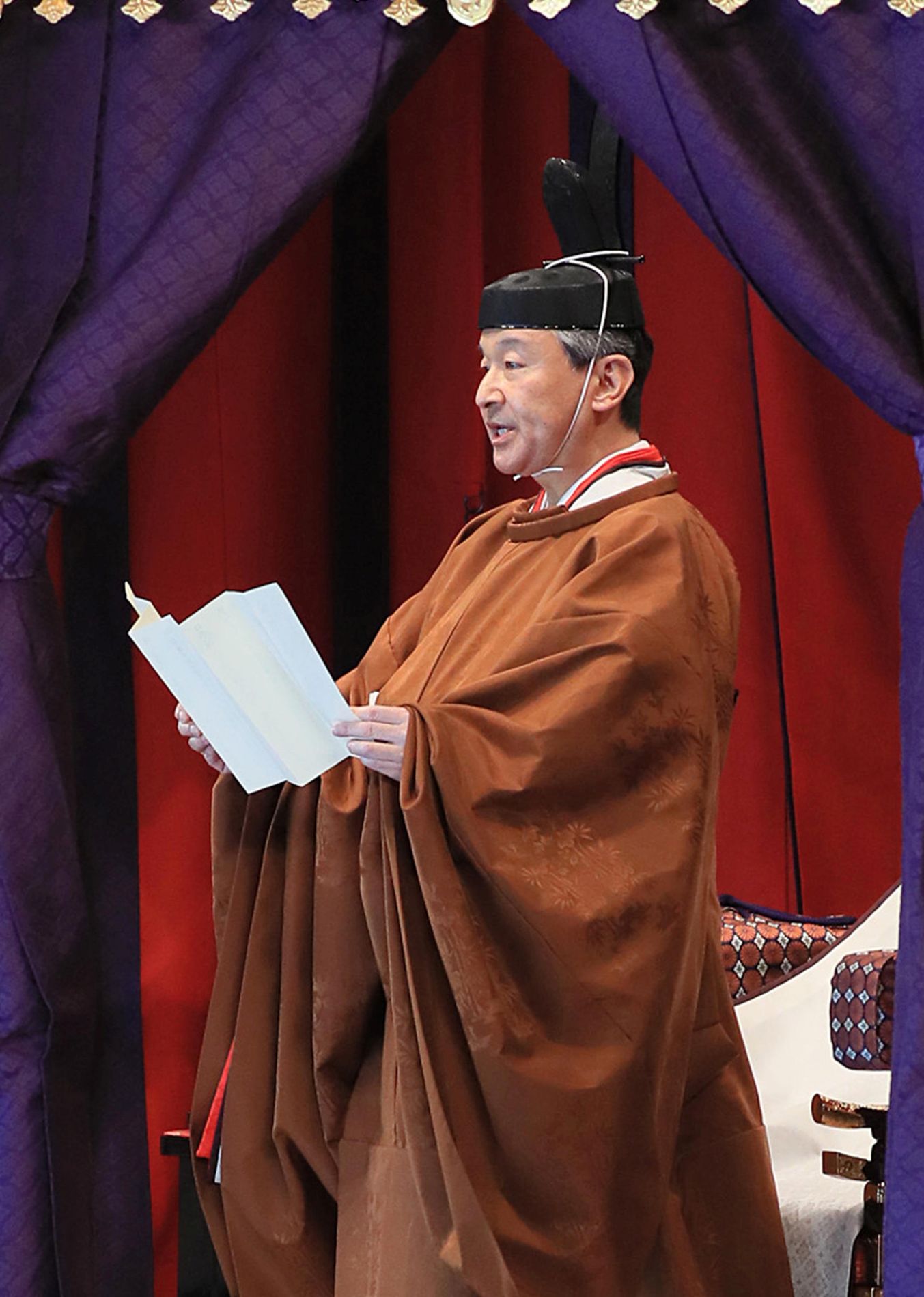 Prime Minister Shinzo Abe gave a congratulatory address to the new Emperor of Japan, declaring: