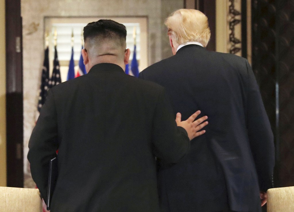 “In order to achieve this aim, first of all, President Trump directly brought up and declared to Kim Jong-un the importance and necessity of solving the problem. This is the first time this has happened,” he continued.