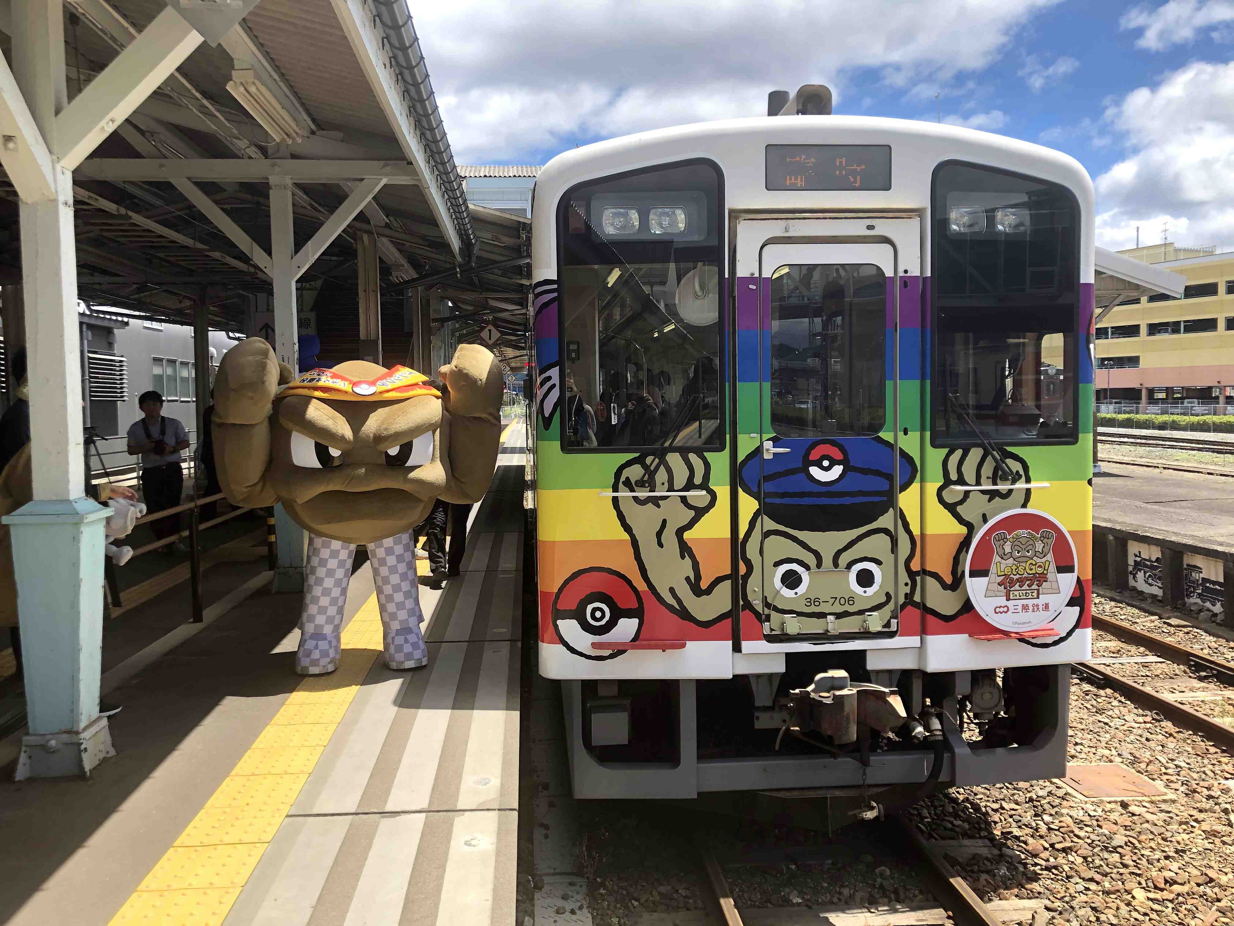 The designer of local PR mascots “Wankokyodai” was in charge of the illustrations, allowing for a slightly different feel to the Geodude we all know. The train operation was partially suspended following Typhoon Hagibis in October 2019, but will resume full operation on March 20, 2020.