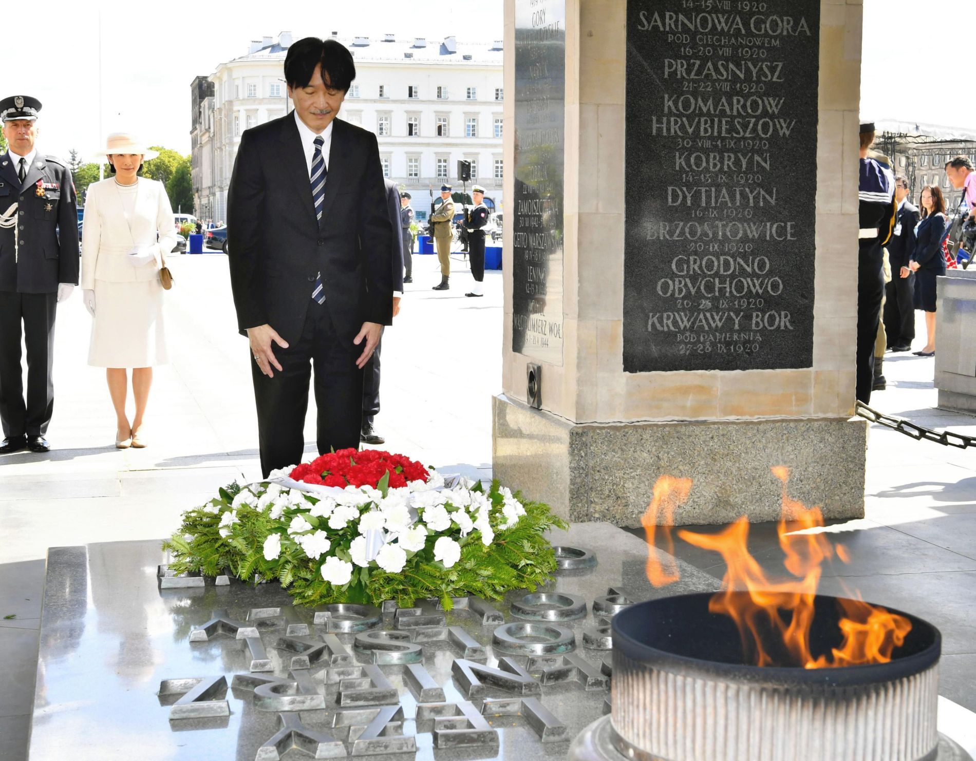 Crown Prince Akishino, the presumptive heir to the Chrysanthemum Throne, and his wife Princess Kiko visited the Republic of Poland early in the summer of 2019, marking the 100th anniversary of the establishment of diplomatic relations between Japan and Poland.