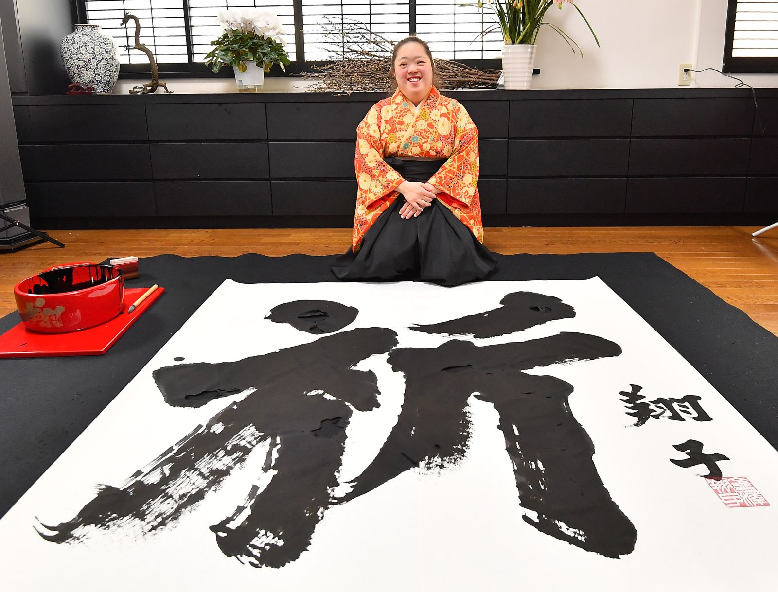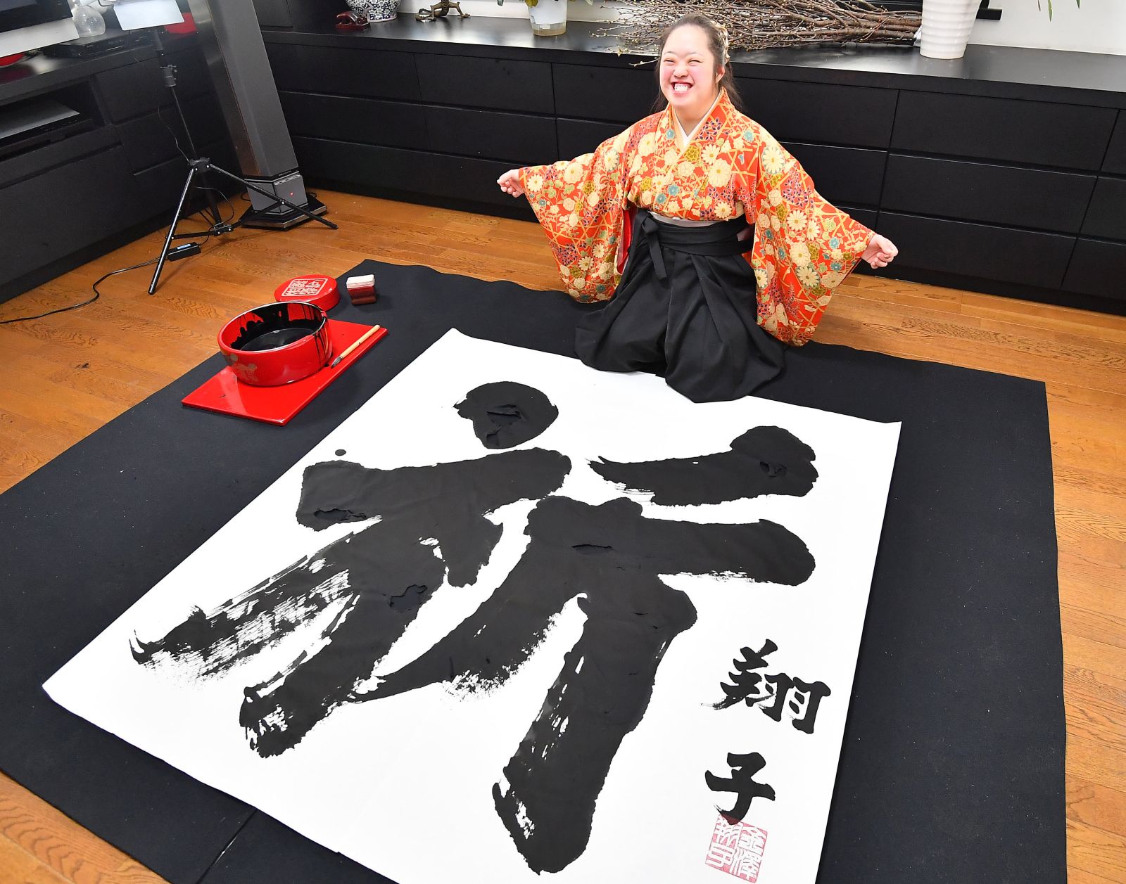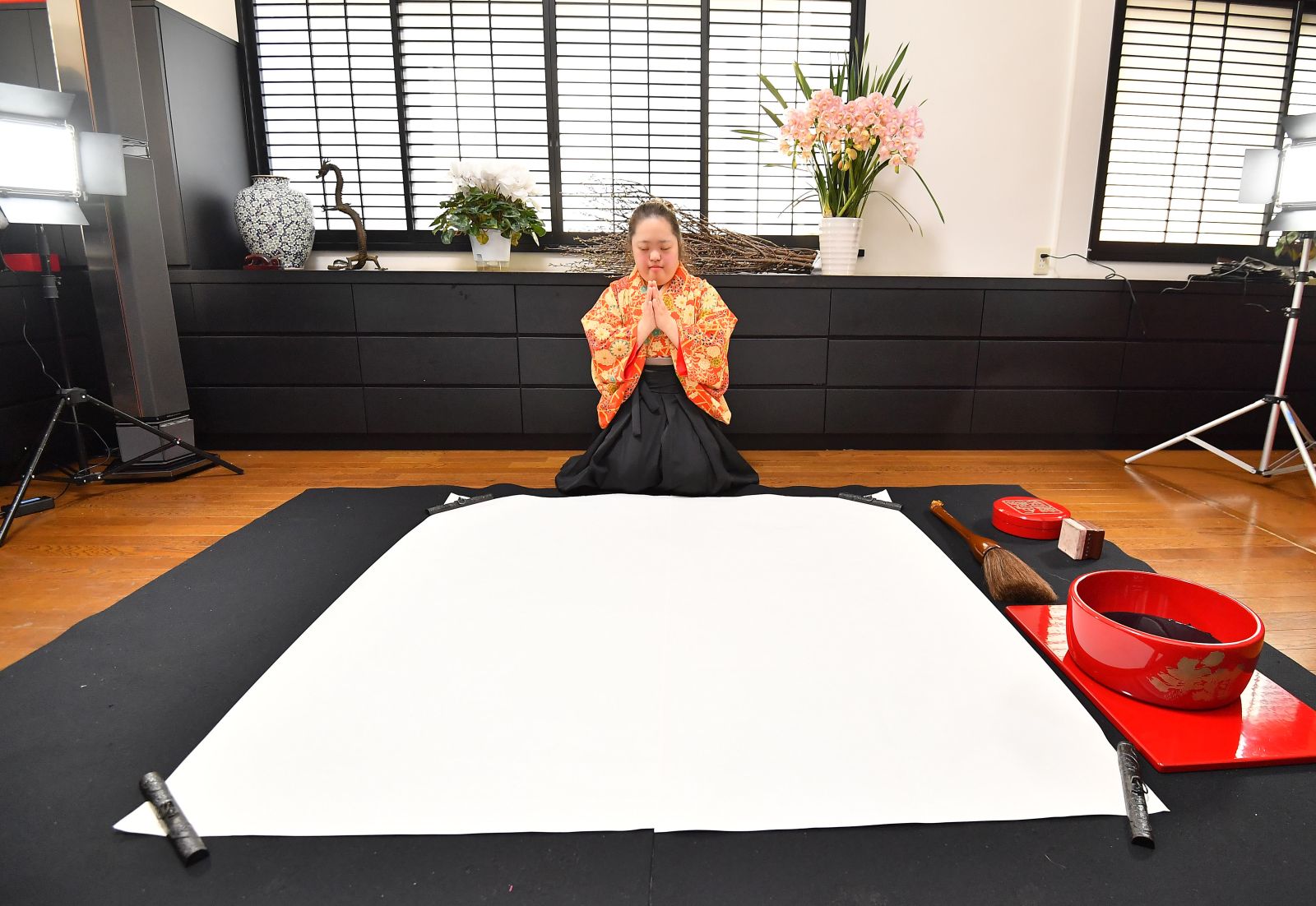 It was to her father in heaven — the father who had longed to see his daughter exhibit her calligraphy for the world to enjoy — that Shoko prayed before setting to work on the 2019 New Year’s character, “prayer.”