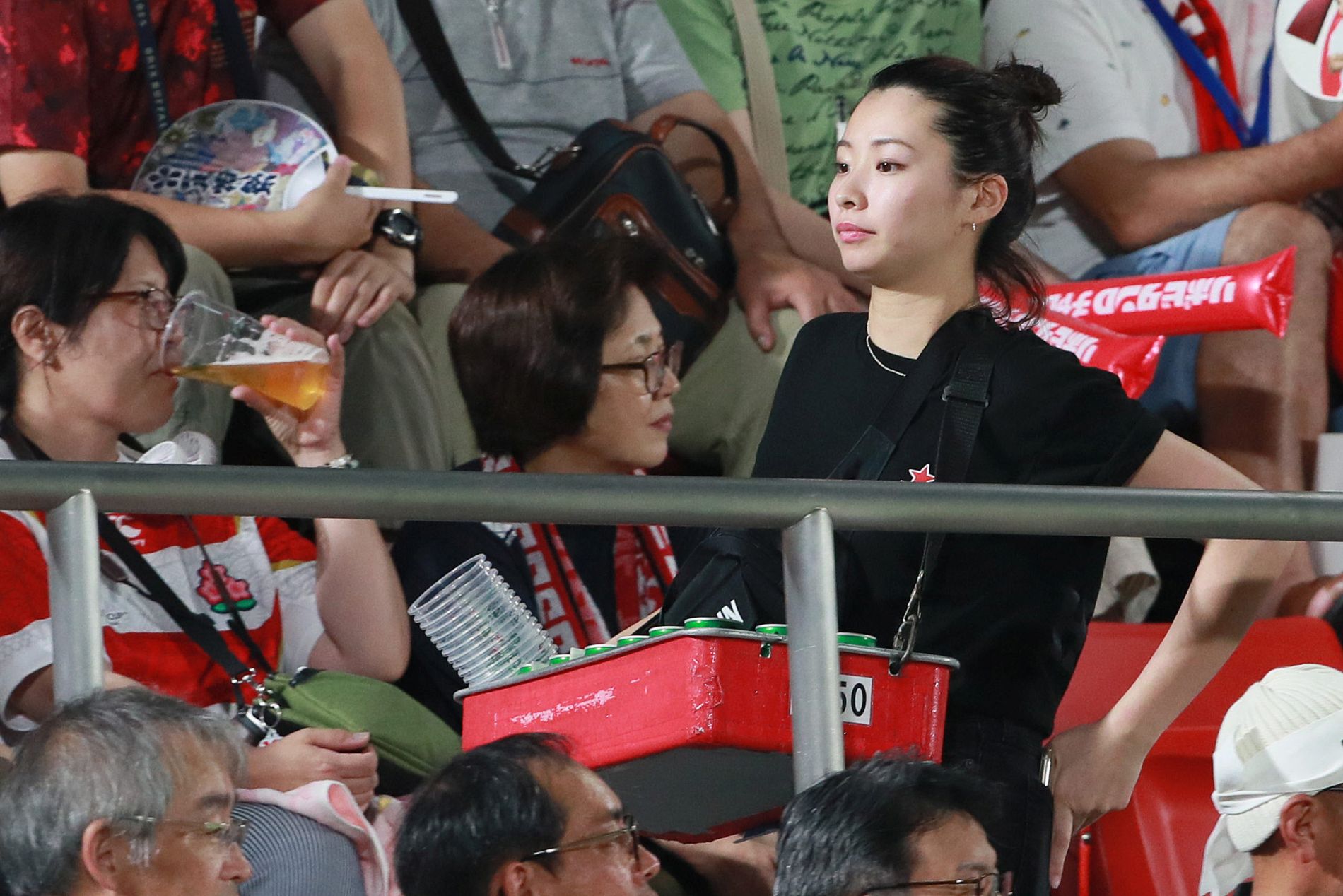 So, in a Japanese stadium, an angel carrying a beer tank on her back will pour the golden amber liquid into your glass with a smile. And you won't miss any of your favorite team’s precious tries.
