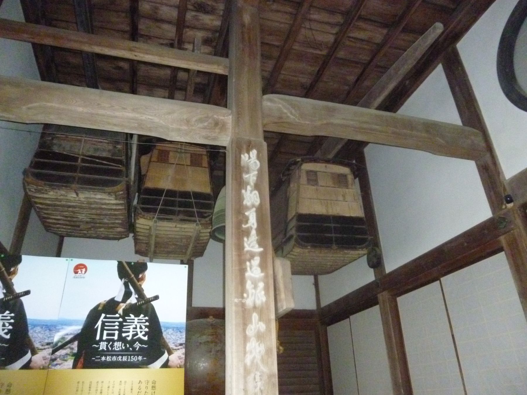 If you step just inside the main entrance of the temple, and look up to your right, the palanquins that were used to transport Niwa clan members are still stored there.