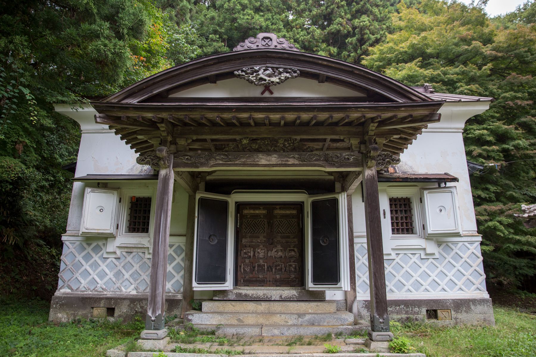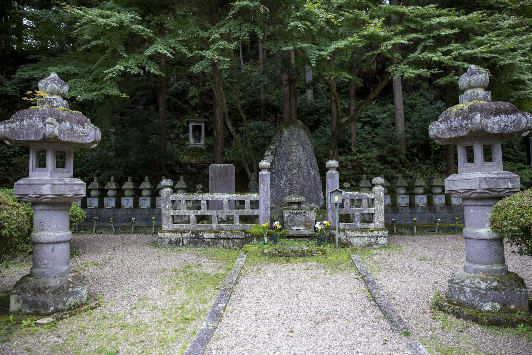 Diarinji Temple was constructed in 1627, yet is something of an undiscovered treasure. It is free of large numbers of tourists and is serene in its atmosphere. There is a memorial that was erected in the early Meiji period dedicated to the memory of all the souls of the Boshin War. On either side of the memorial are two sets of eight graves of the Shonentai warriors killed in battle.