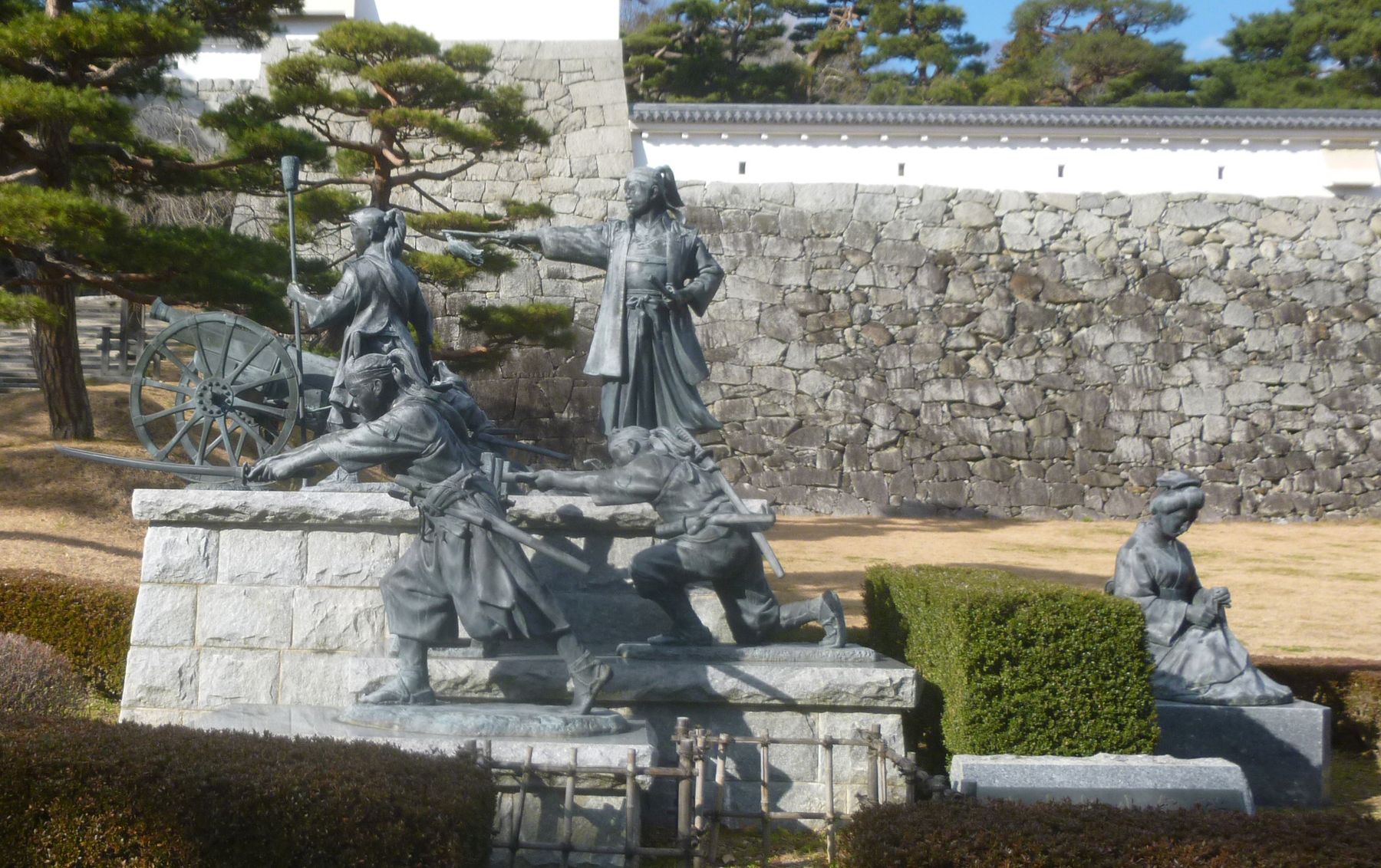 Including Kimura and Nikaido, 16 members of the Shonentai Youth Corps were killed in battle. A group of statues dedicated to them stands outside the reconstructed Minowa gate entrance of Nihonmatsu Castle gardens (Kasumigajo Park).