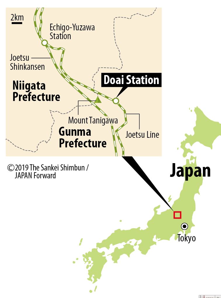 Doai Station is accessible via a three-hour drive northwest from central Tokyo or by taking the Shinkansen to Echigo-Yuzawa Station, then taking the local Joetsu Line to Doai Station itself. Taking the train will generally take about three hours as well, but the schedule can vary depending on the time of day.