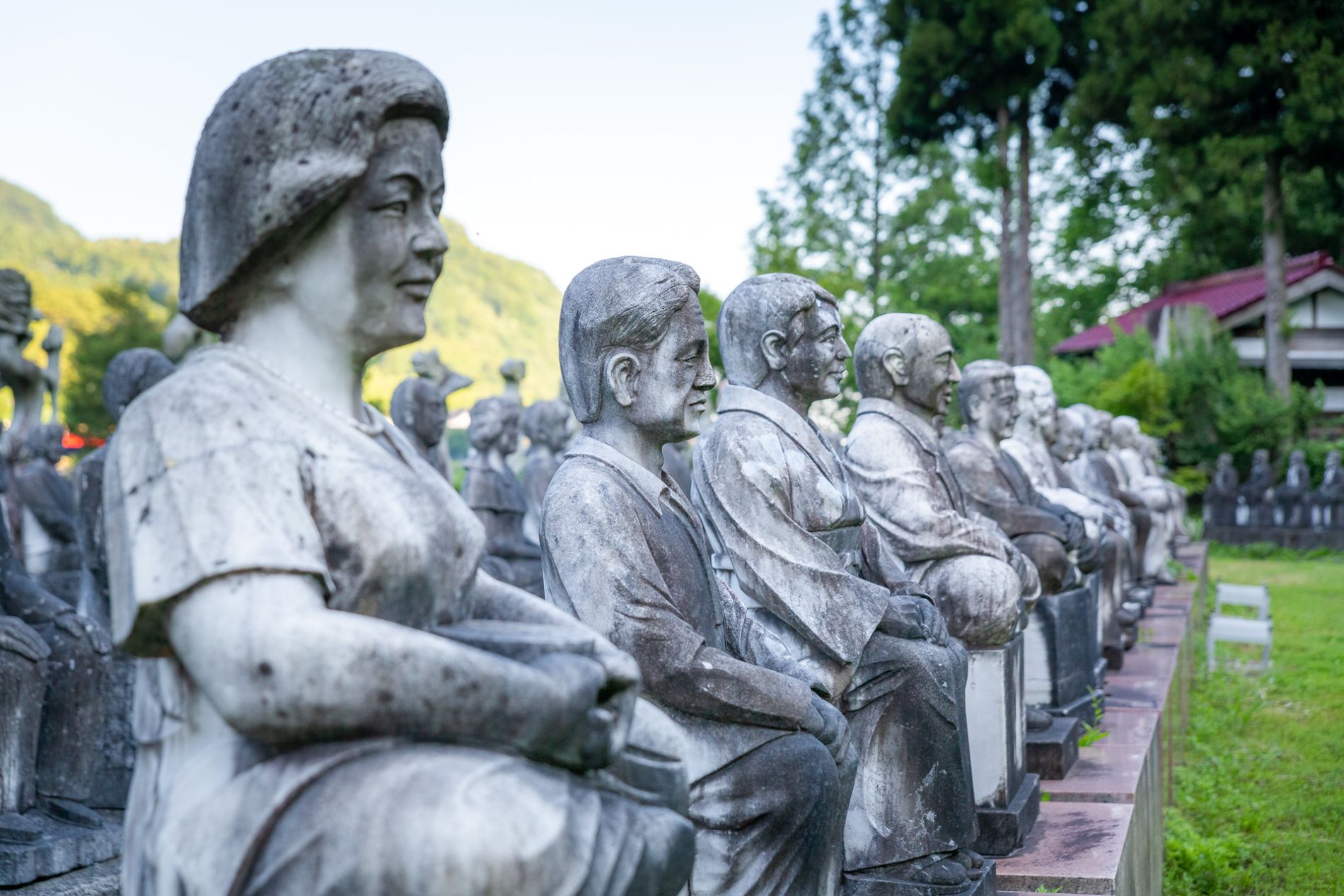 It took around three to four years in total for all of the statues to be created and placed at the Fureai Sekibutsu no Sato. The statues were situated with the oldest ones towards the top of the hill, while the newer ones were placed at lower elevations in the area.