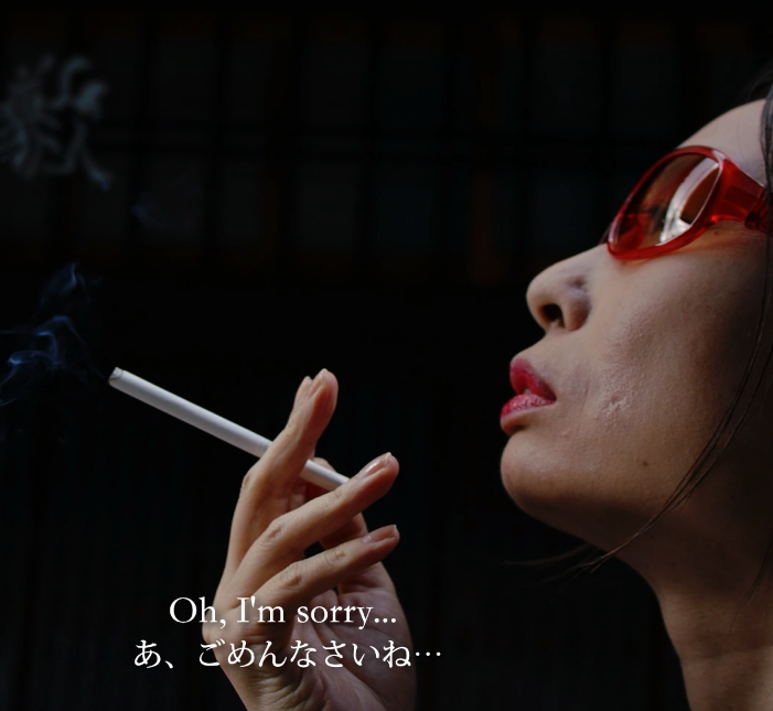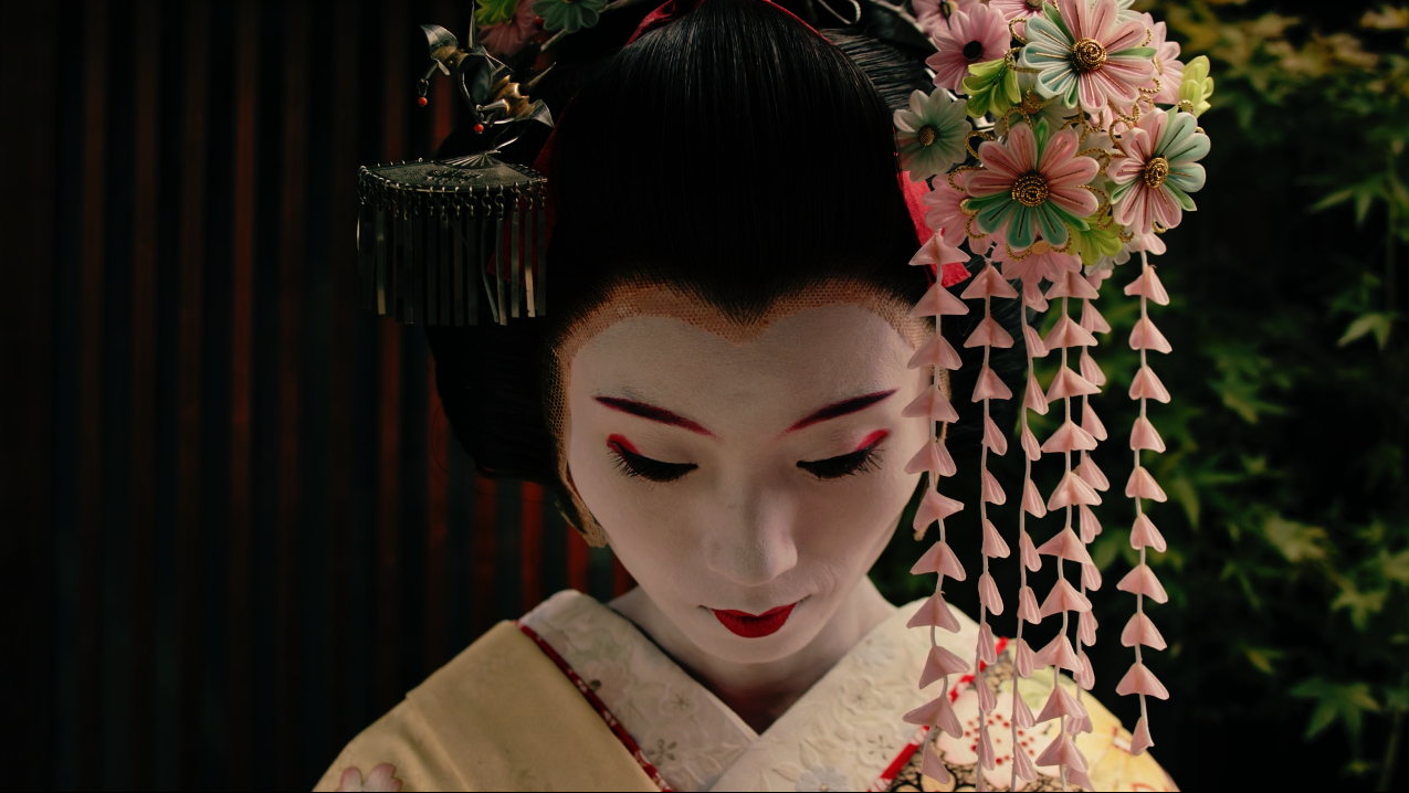 Finally, the video zooms in on the poignant look of the young woman we think is a maiko. Only her thoughts enlighten us otherwise: “Would it be better not to tell them I am not a real maiko?”