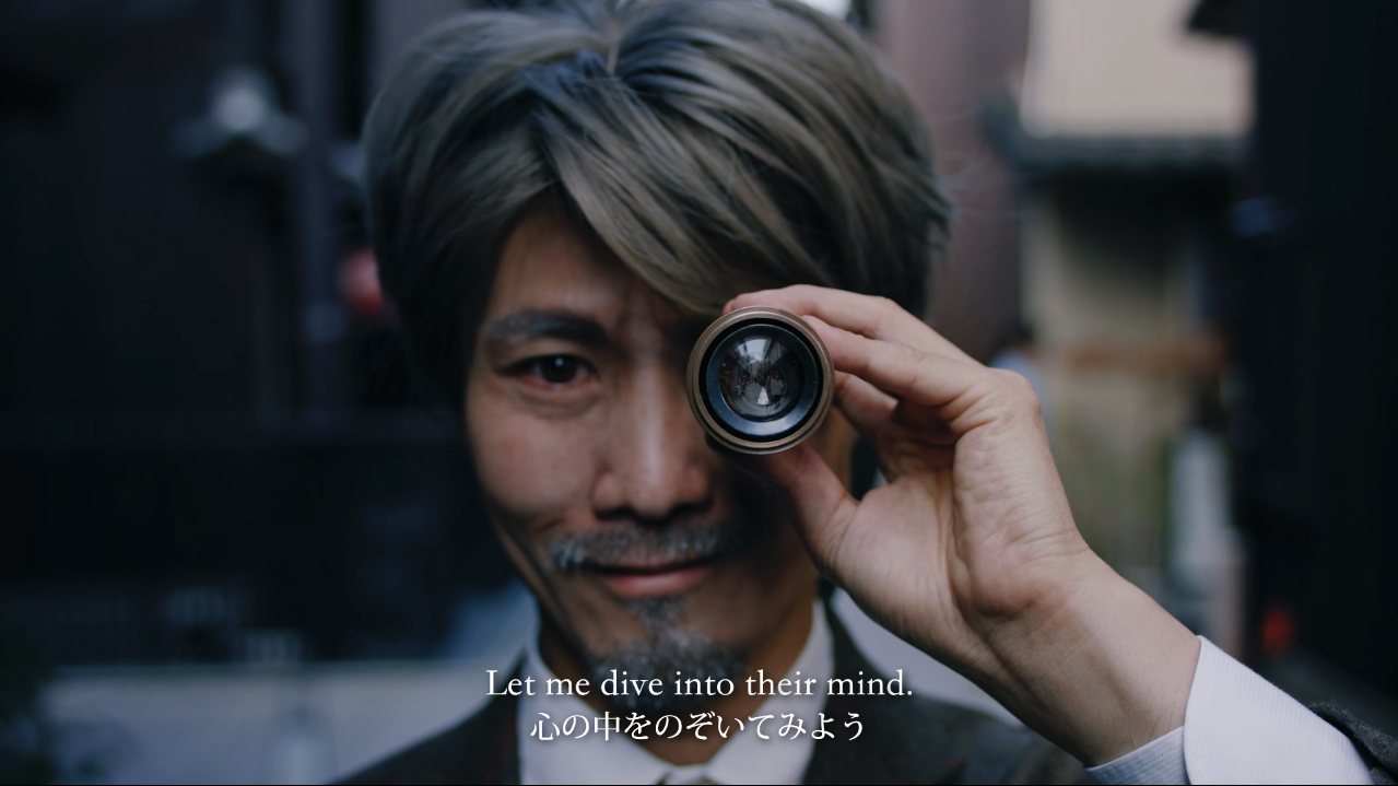 The video then moves to a Japanese observer, who is puzzled by what is going on. With the use of a monocular, the observer decides to see what the people in front of him are thinking.