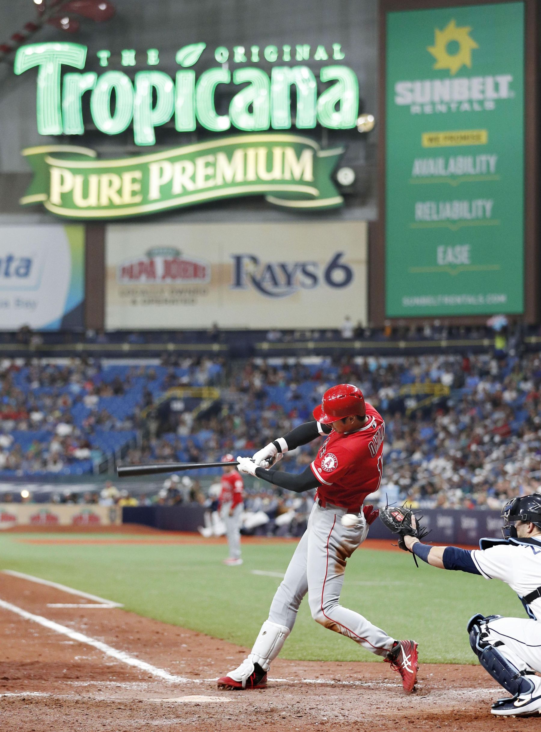 In a game against the Tampa Bay Rays that day, Ohtani first smacked a three-run homer, his eighth for the season, over the left-center-field wall in the first inning. He did it off Rays’ left-handed hurler Ryan Yarbrough, whose pitches are reputed to be difficult to hit.