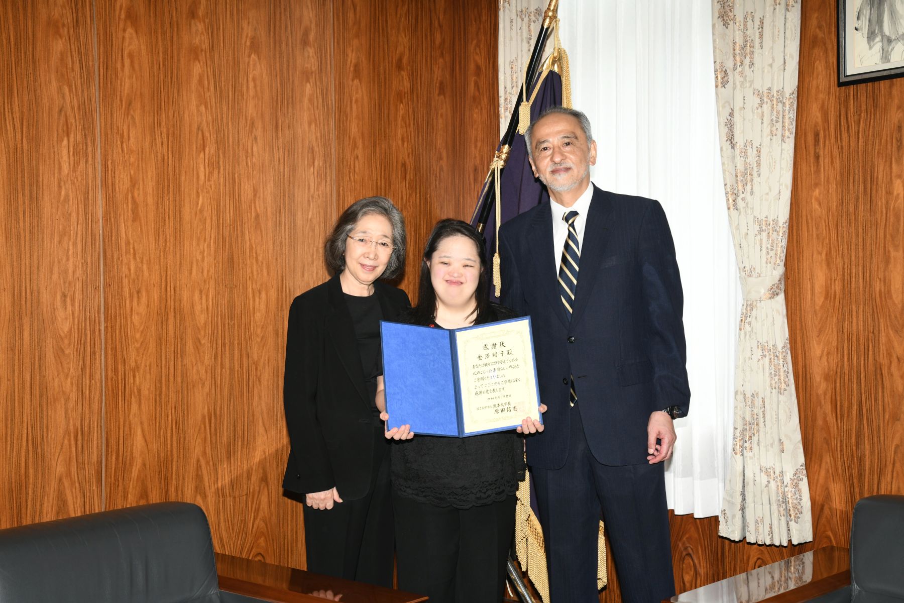 “Kumamoto University suffered from the Kumamoto Earthquakes three years ago and we are still in the process of rebuilding,” said the university’s dean, Shinji Harada, 69, who handed Shoko the letter of gratitude and souvenir on July 8.