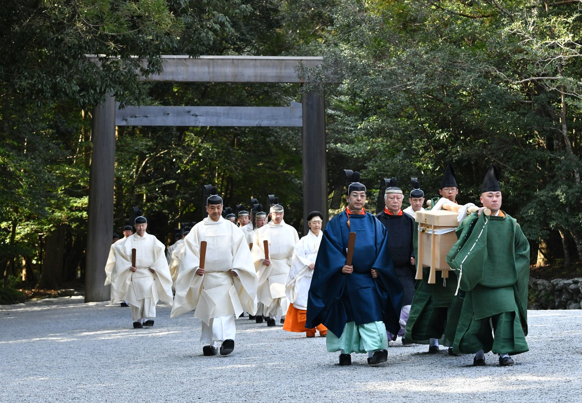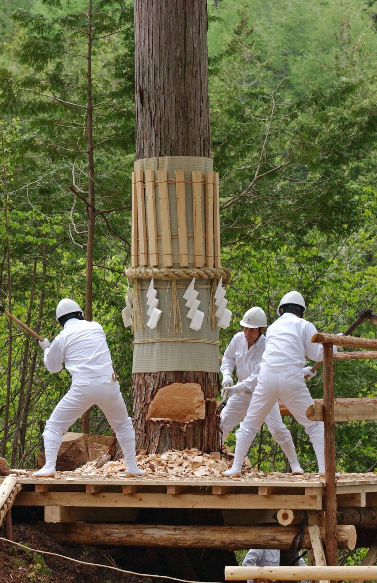 Shikinen Sengu involves 32 rituals and ceremonies. It begins with the ritual cutting of the first trees for the new buildings and continues until the transfer of the sacred mirror, eight years later.