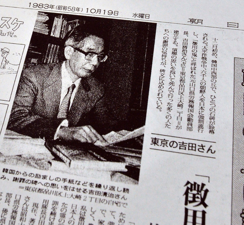 “It really is a marvel,” the younger Yoshida said, “that the South Korean side would re-erect that stela when even the Asahi Shimbun now admits that my father lied about everything—his testimonial, his government rank, all of it.”