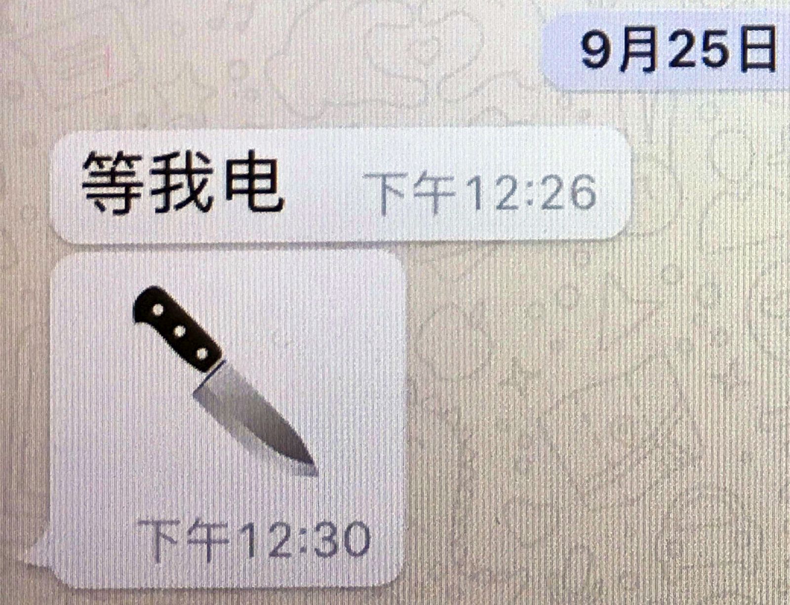 The next day, on September 25, he texted her a cryptic note from Beijing, saying, “Wait for my call.” A text message came four minutes later, and was a knife emoji. Ms. Meng later said it signified that “he is in danger.” Her 10-day wait for a call from her husband must have been agonizing.
