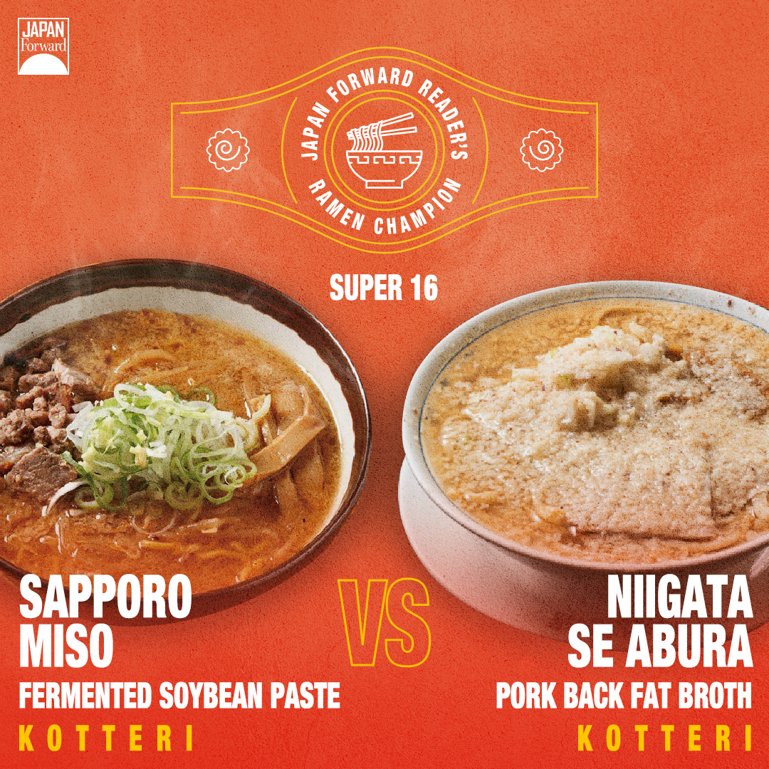 The top 16 ramen options have been narrowed down (with many difficult exclusions), and now it’s up to you, JAPAN Forward readers, to declare the best. Cast your votes every Wednesday from now until the final round, and collectively decide the Ramen Champion!