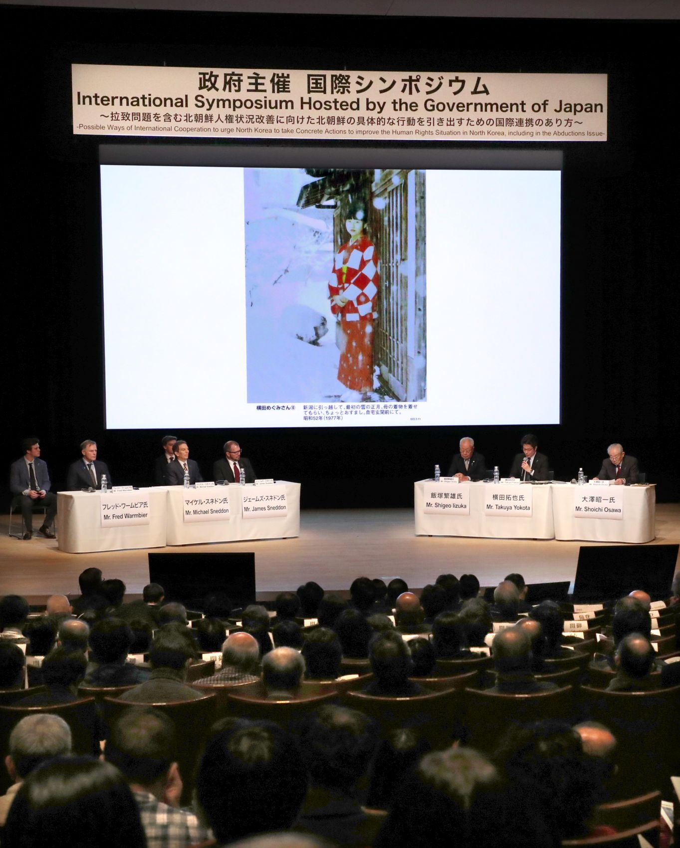 The family of American victim David Sneddon, believed to have been taken by North Korean agents while traveling in China in 2004, was represented by the victim’s brothers. Michael Sneddon spoke to the largely Japanese audience in English, and James delivered the family’s message in Japanese, expressing commonality with the families of the Japanese victims and hope for the speedy return of all victims.