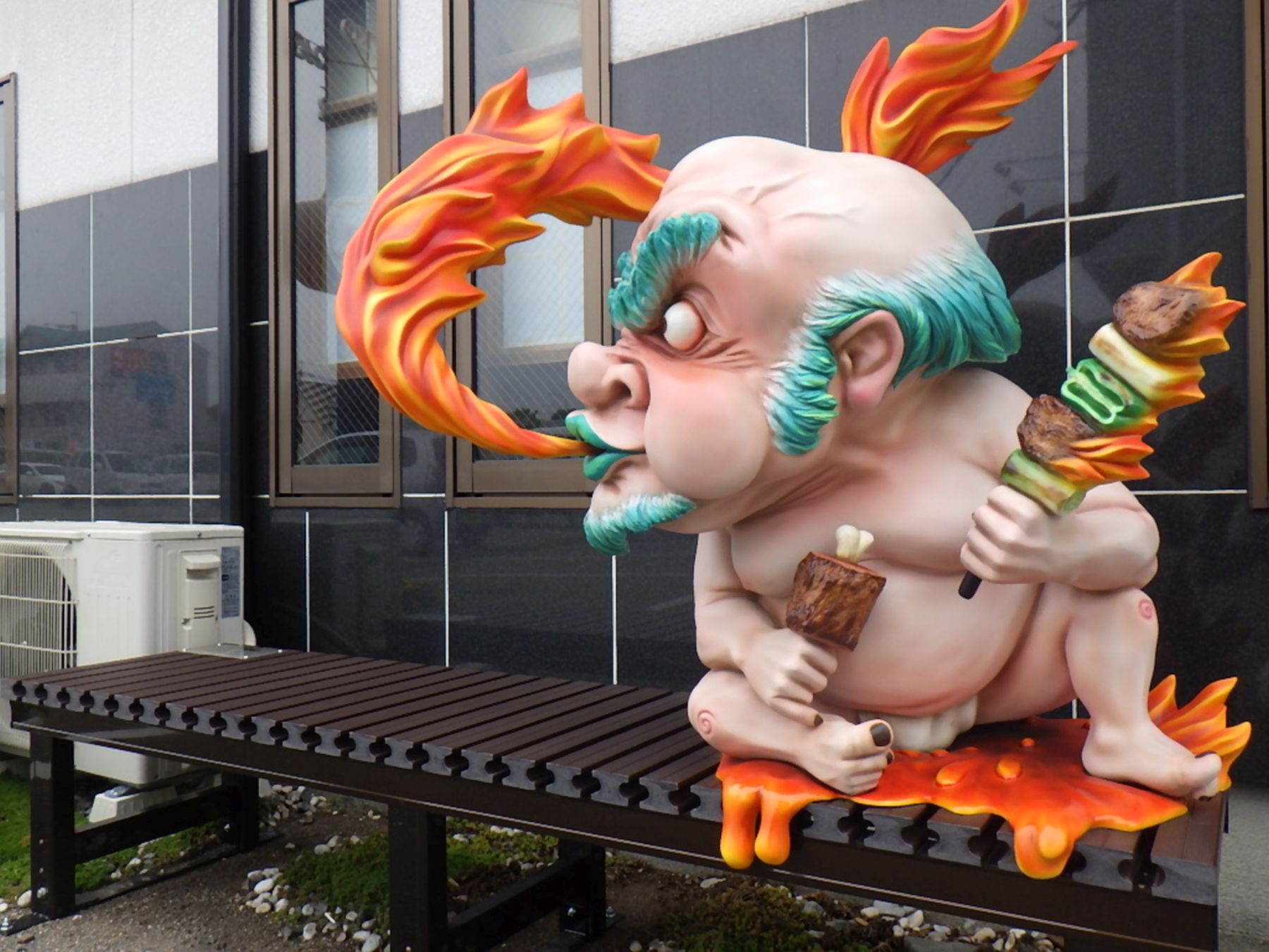 The town’s audacity shows no sign of stopping. In order to attract tourists to the town center, nine yokai benches have been installed in front of shops lining the street from Fukusaki Station to Tsujikawayama Park.