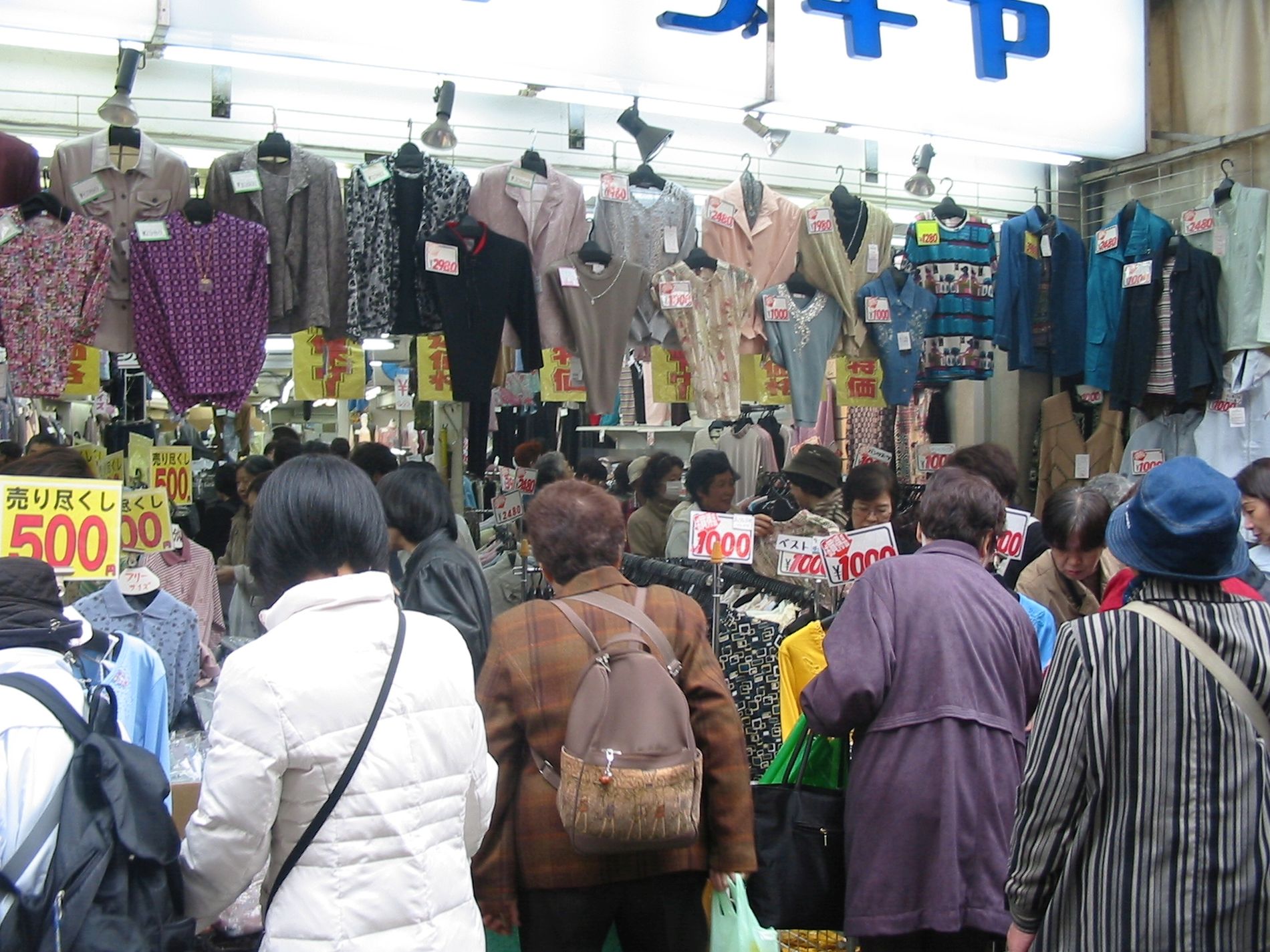 Always busy, the shopping street and the trams that bring visitors become very crowded on the 4th, 14th, and 24th of each month, when the regular shops are augmented by street stalls selling used clothing, bric-a-brac, condiments, and traditional and modern street food.