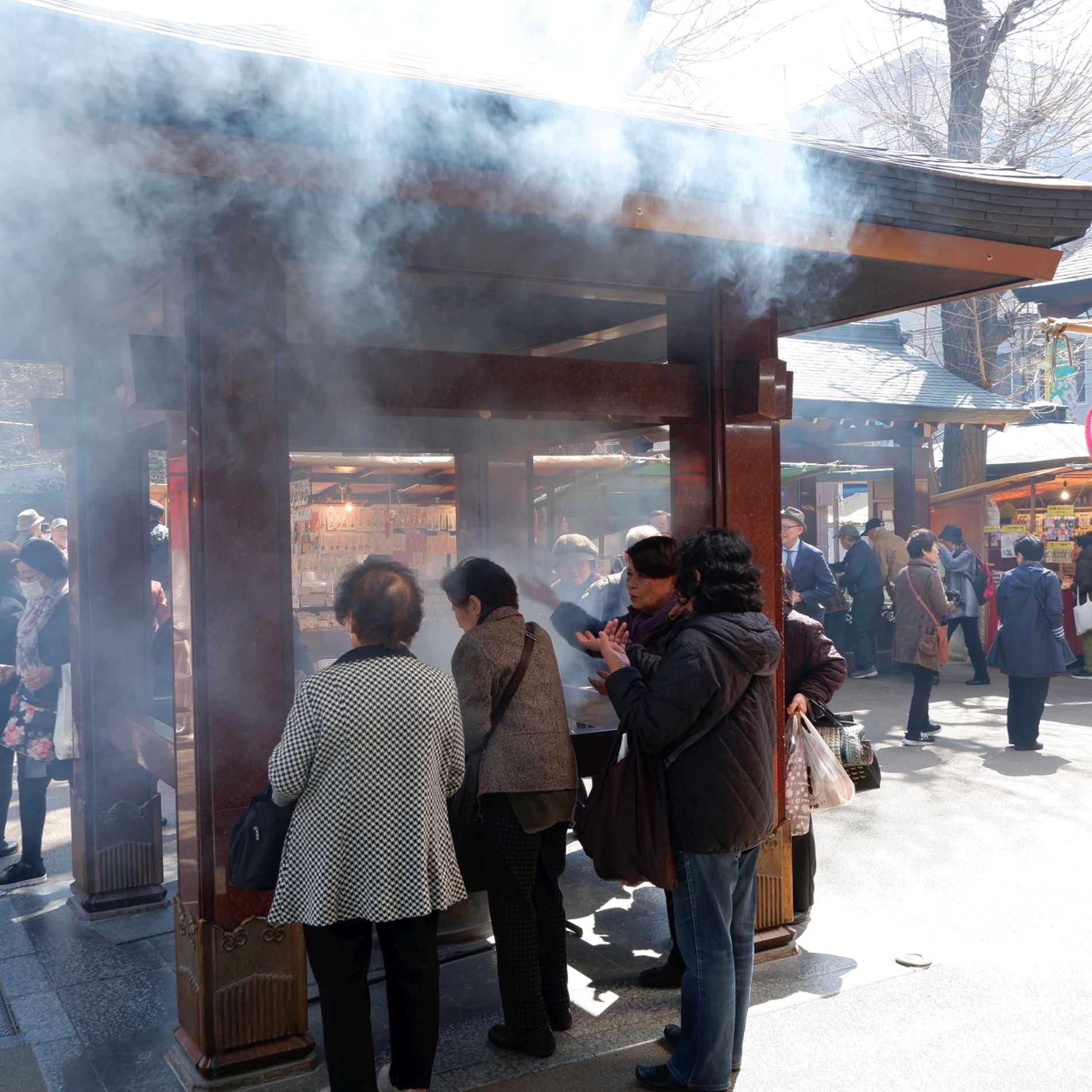 Aside from the shops and stalls, Japanese of all ages are drawn to Koganji Temple where they waft smoke from an enormous incense burner and then ritually wash a statue of Kanon in the hope that their aches and pains will be washed away. [PHOTOS]