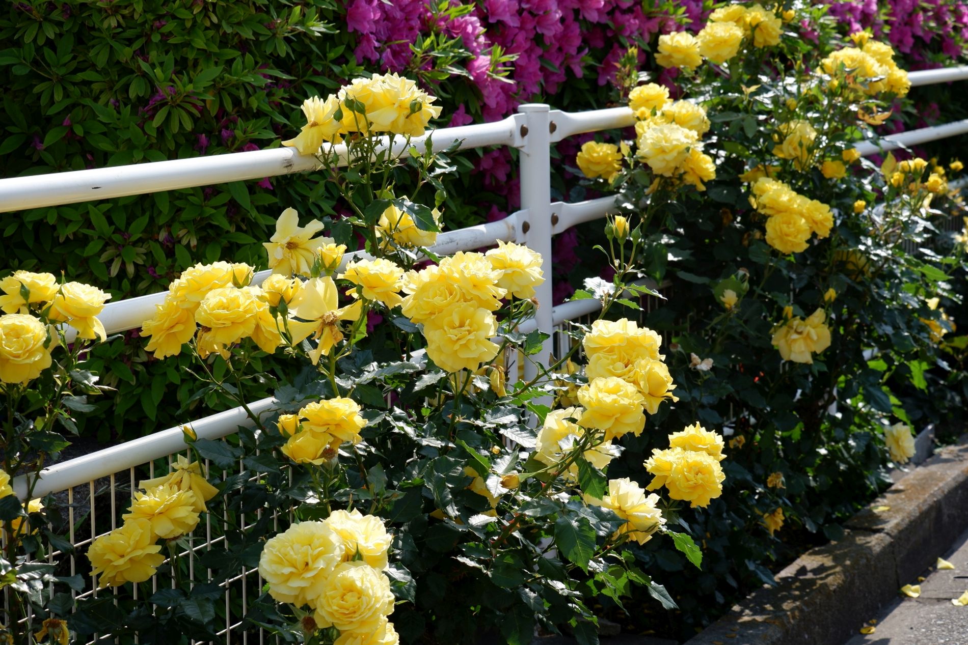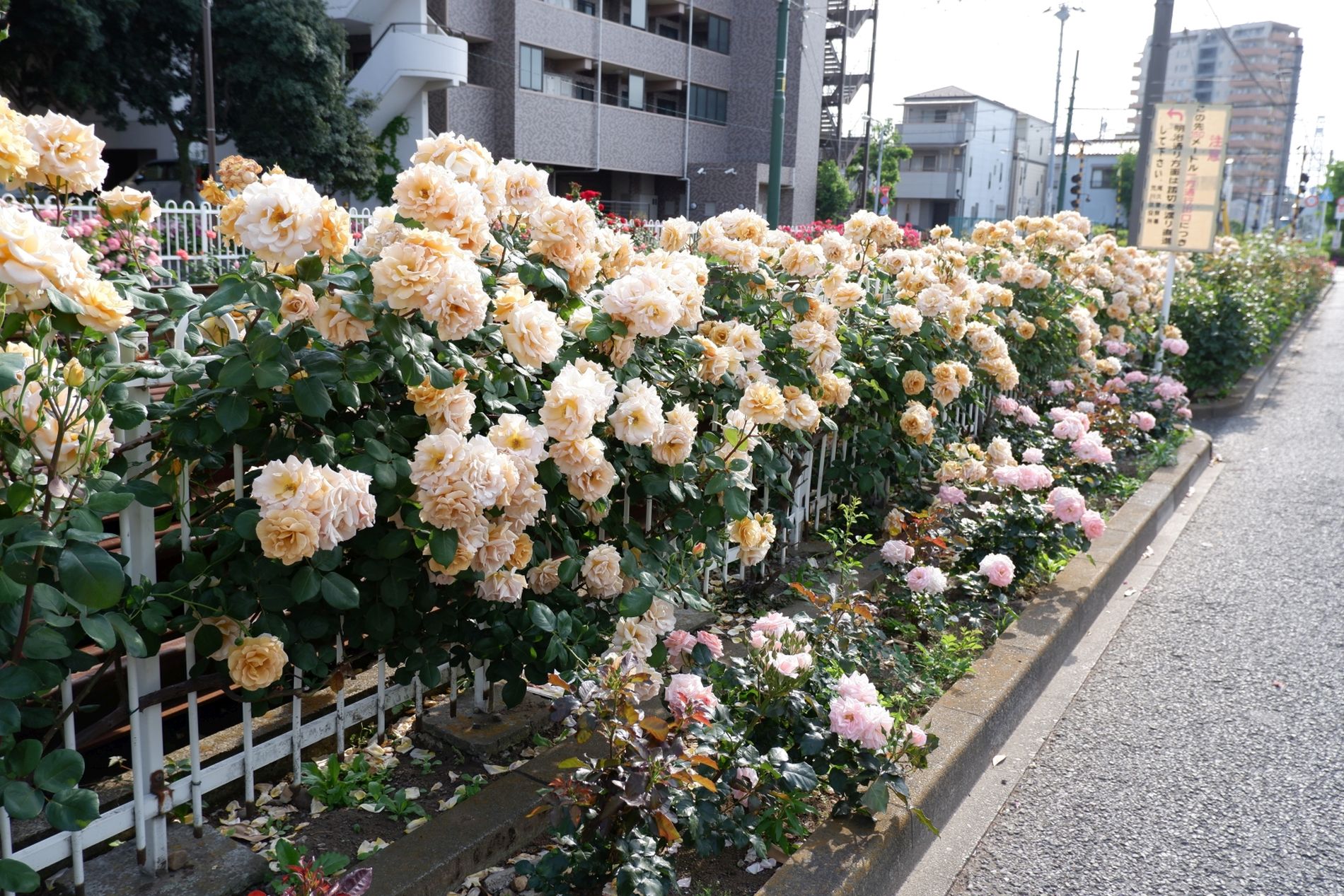 Roses were planted along the right of way by a civic group with the cooperation and encouragement of the municipal government at two locations. One starts at the intersect point with the JR rail line at Otsuka to the west, extending as far as the Mukohara stop. The other begins at the Sakae stop (near the Oji, where it intersects with the JR Keihin Tohoku line) and runs east as far as Kumano Jinja Mae.