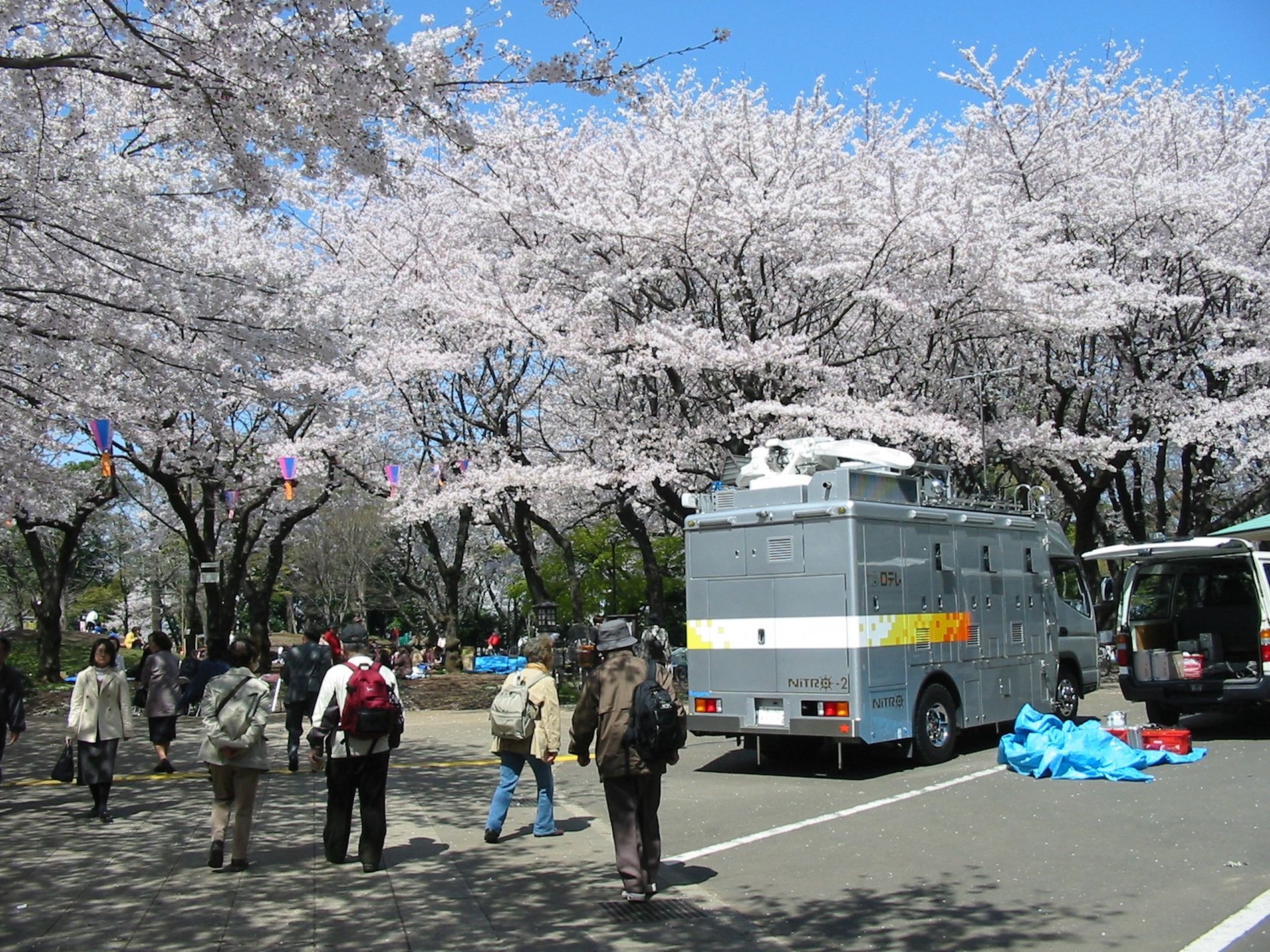 Such is the fame of this park that live broadcasts from it are a standard feature of the cherry blossom viewing season in Tokyo. When I visited the park in May, staff from several television outlets and their equipment trucks were in the park.